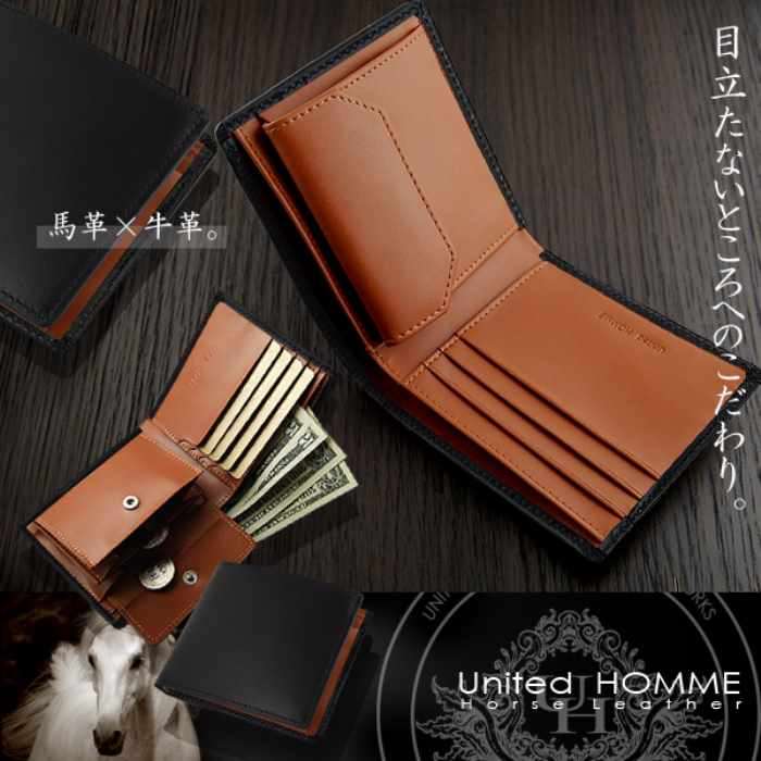 unitedHOMME 馬革×牛革 紳士 2つ折り財布 シンプル メンズ ショートウォレット