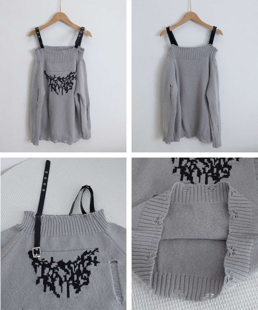 レザー調のサスペンダーストラップがアクセントとなり、こなれ感のあるスタイリングに。