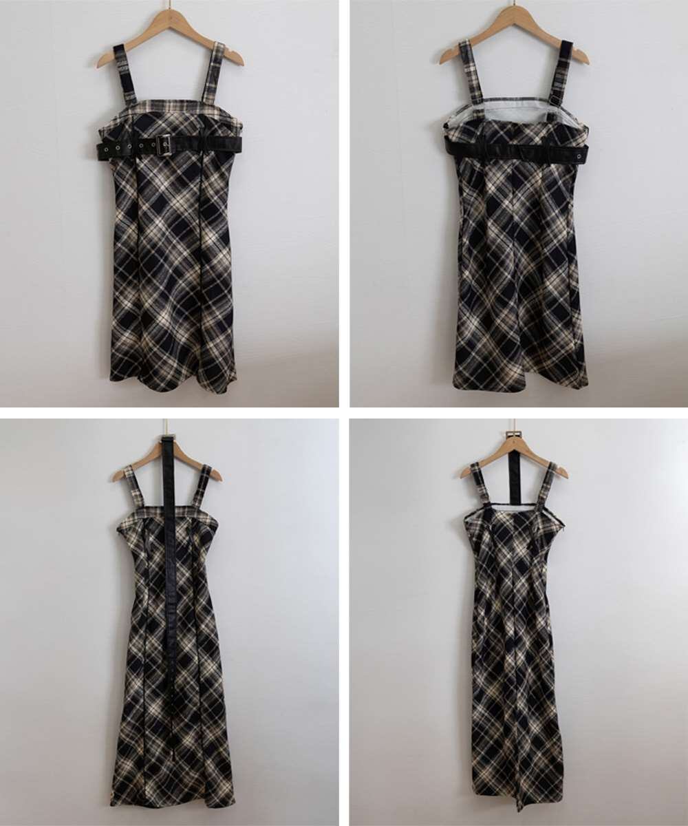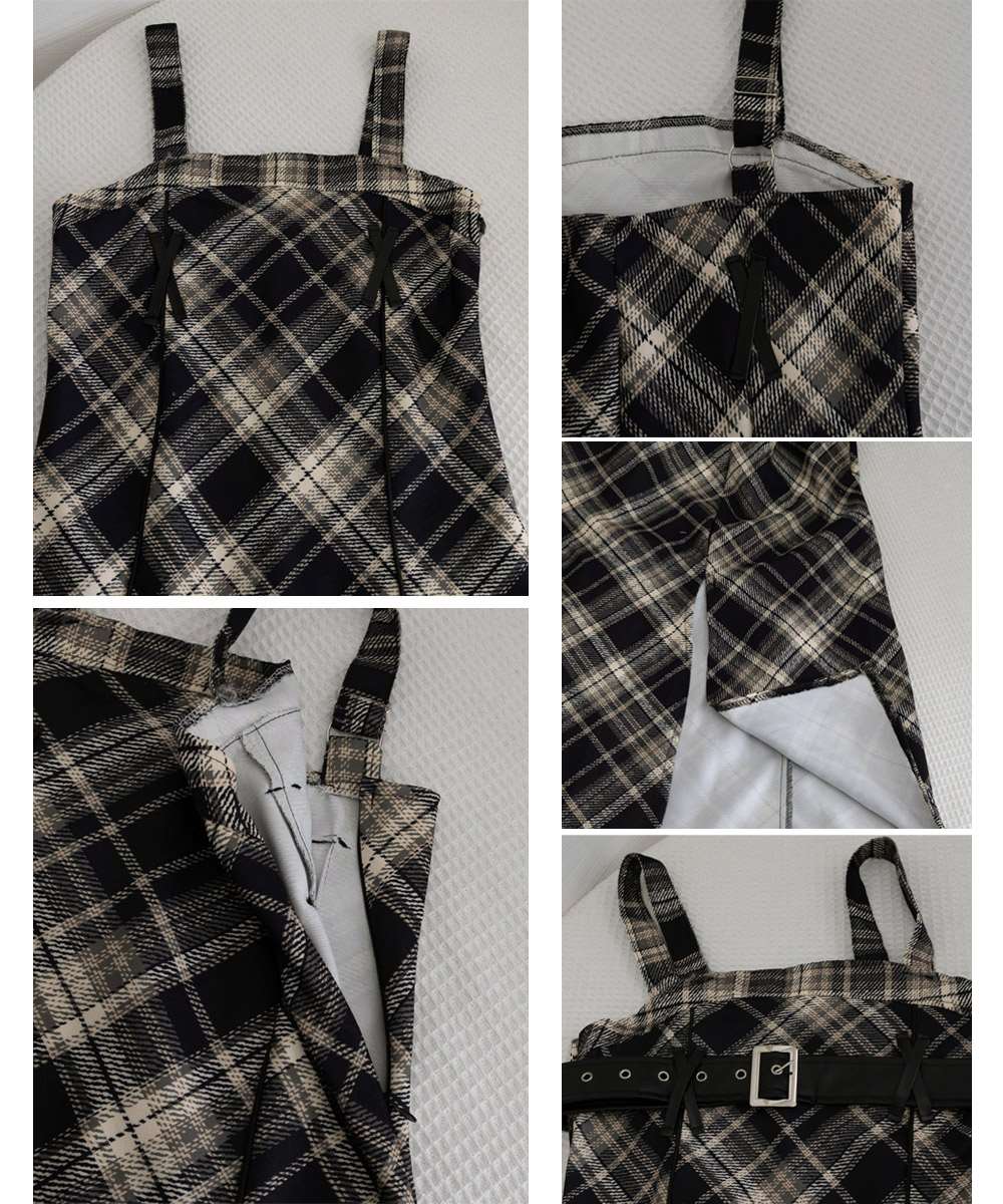 チェック柄 サスペンダー ワンピース ベルト付