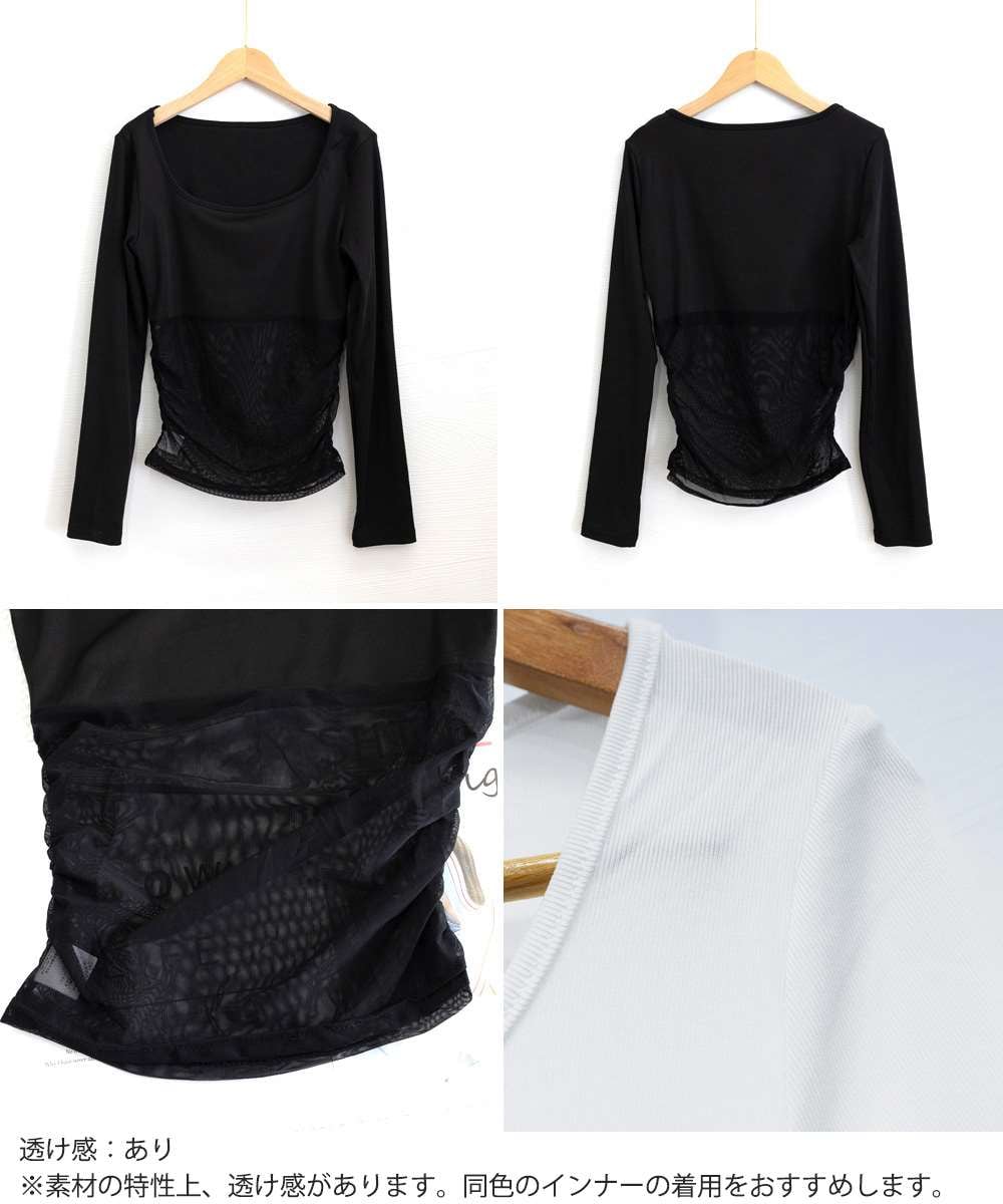 チュール切り替え 長袖 Tシャツ レディース