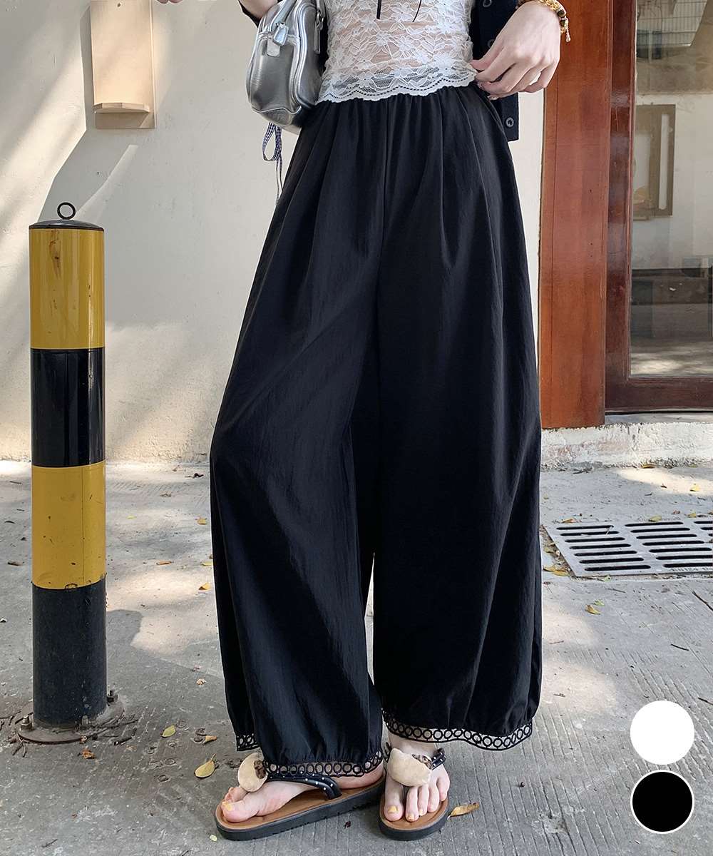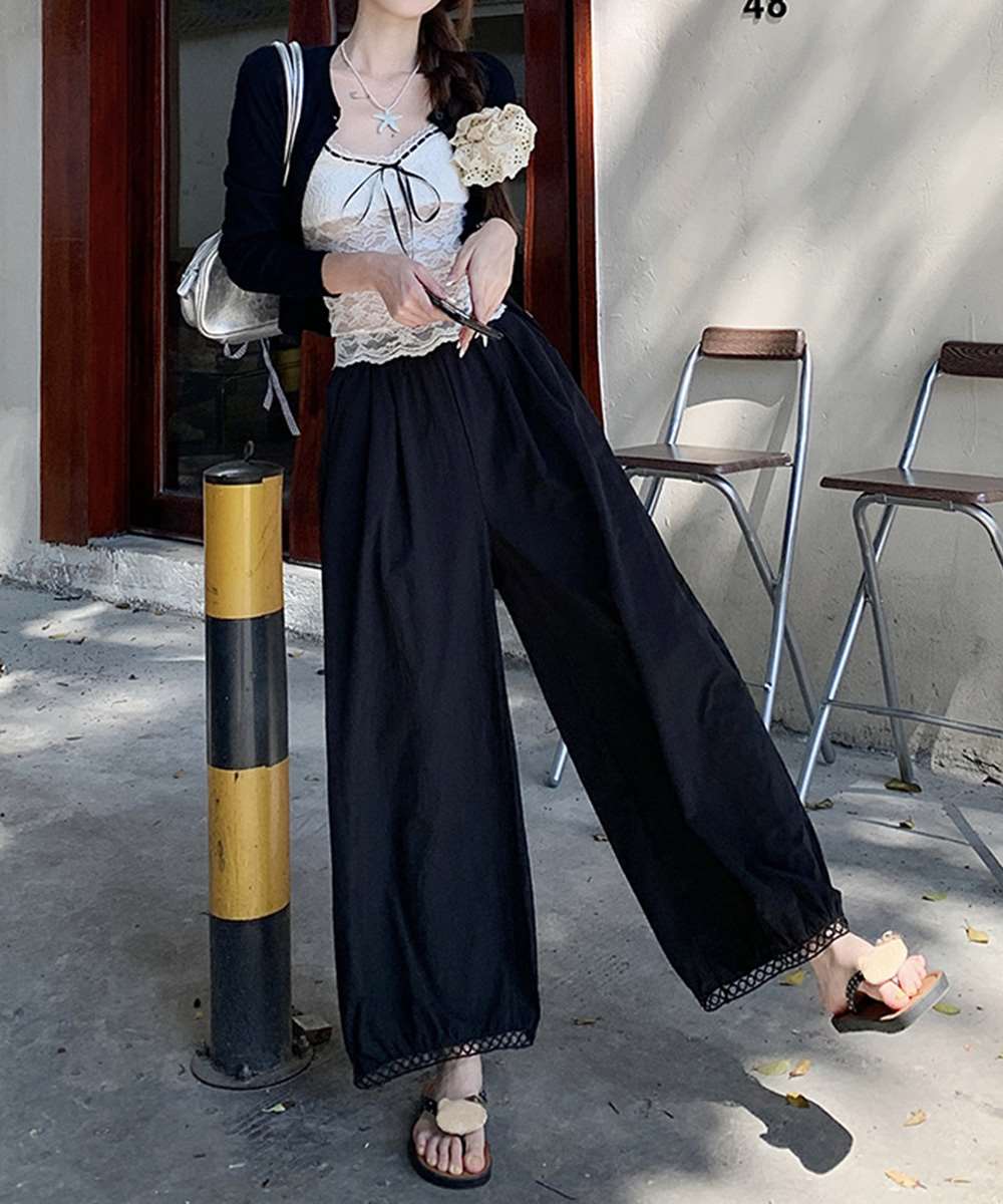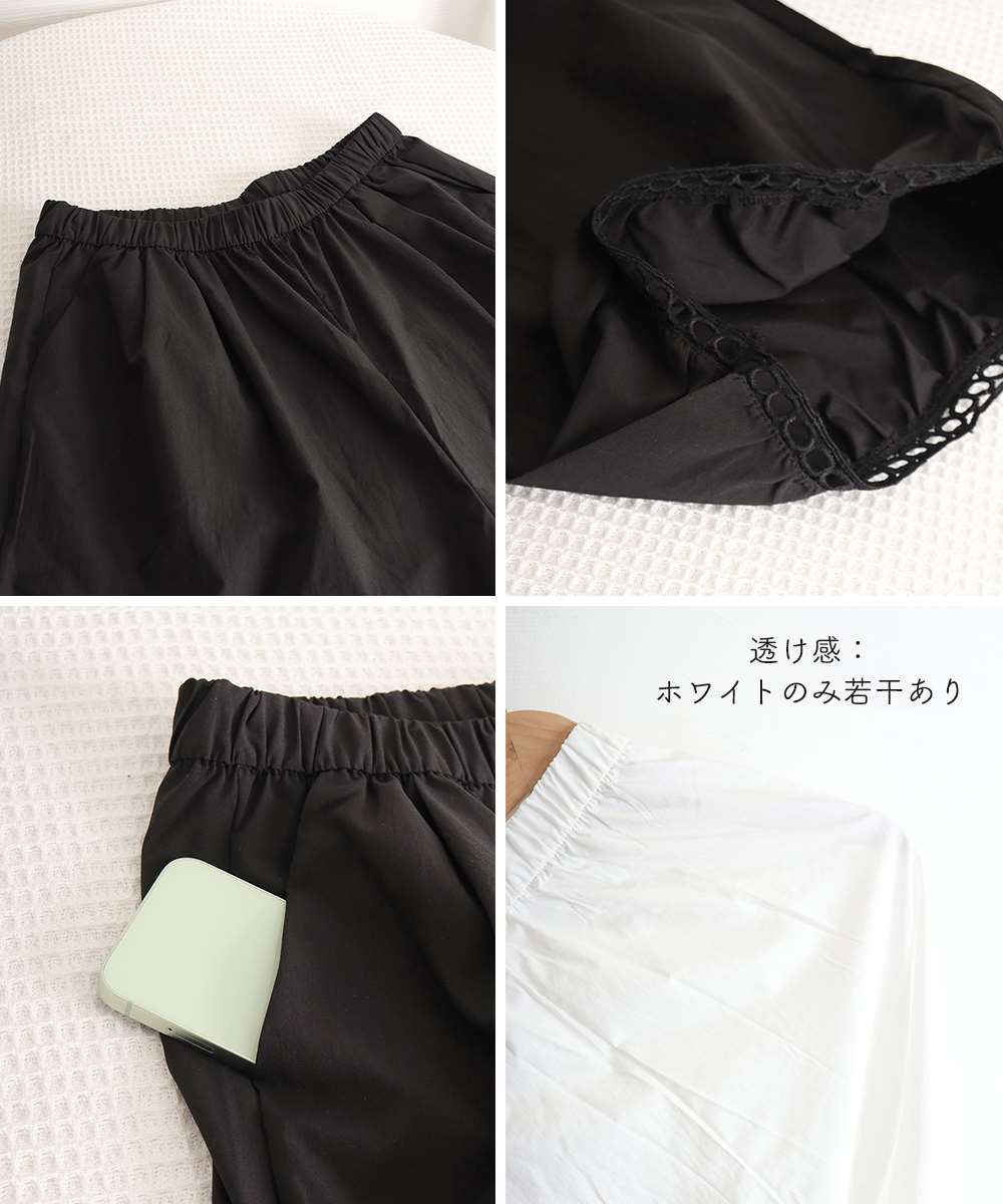 裾部分にさりげないレースディテールを施し、シンプルながらも女性らしいアクセントをプラス。
