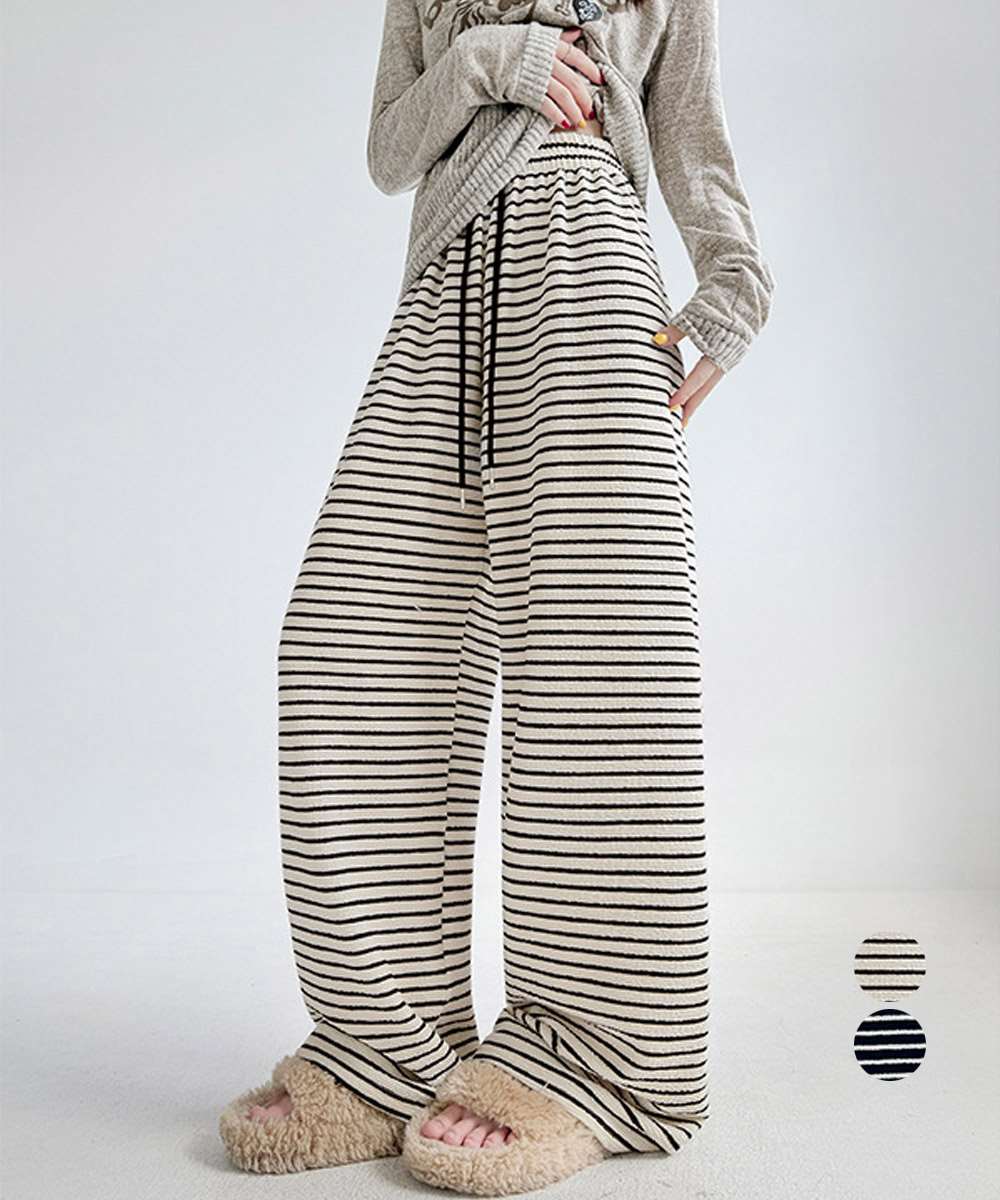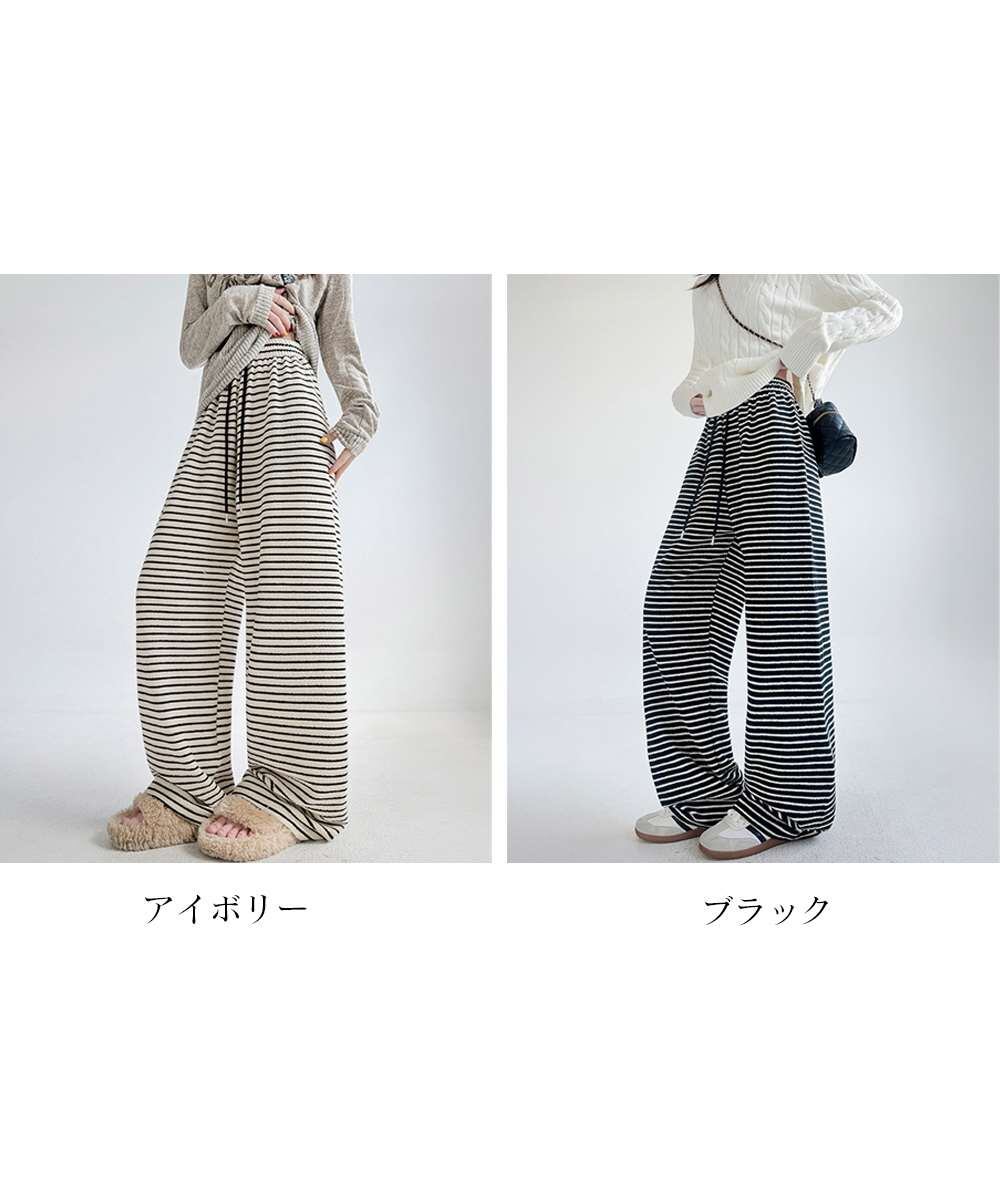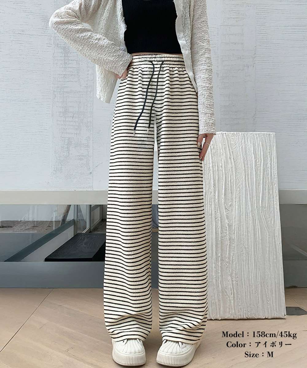 イージーパンツ ロング丈 ボーダー