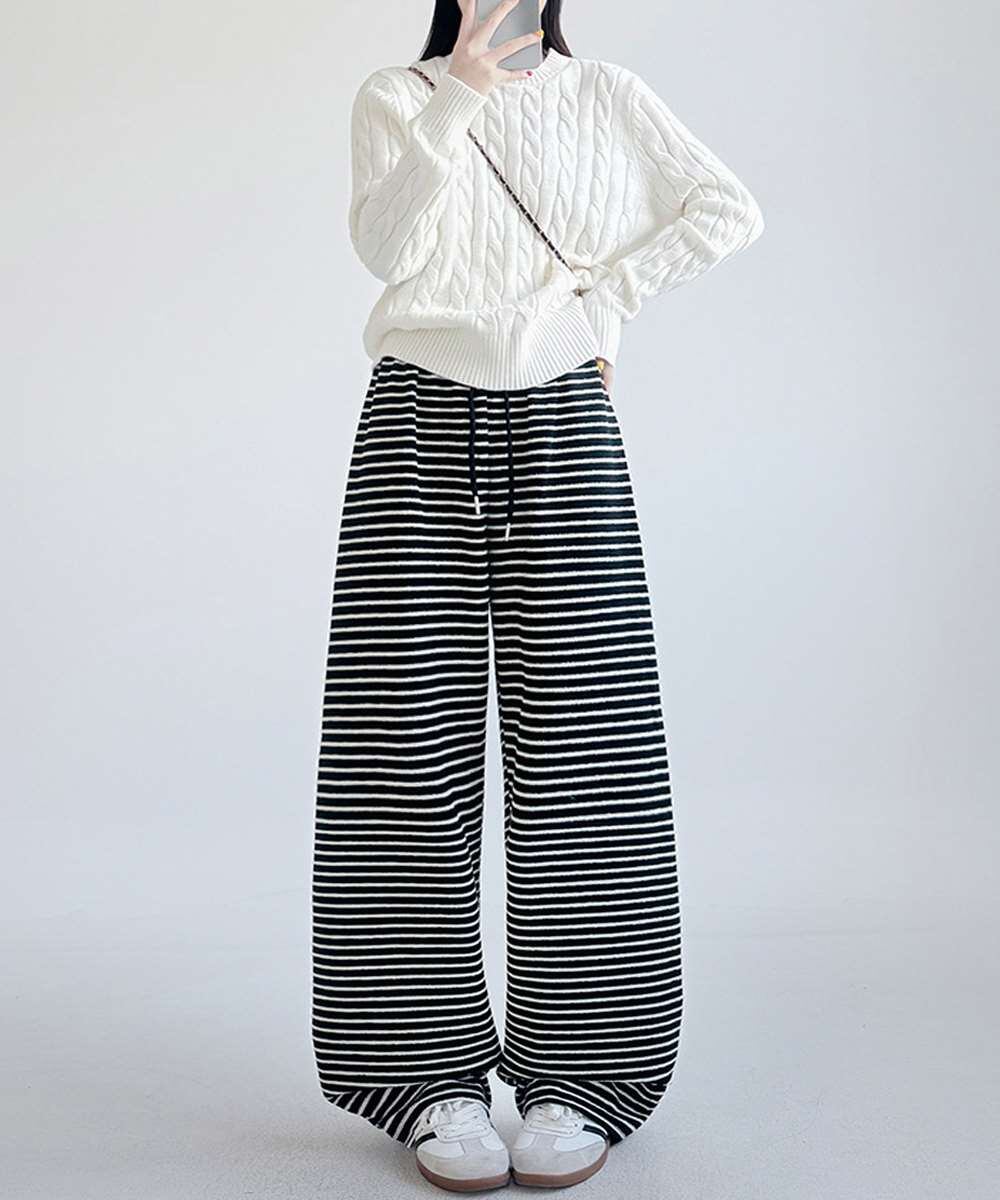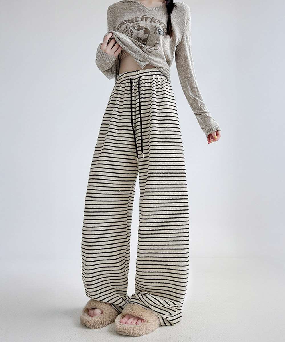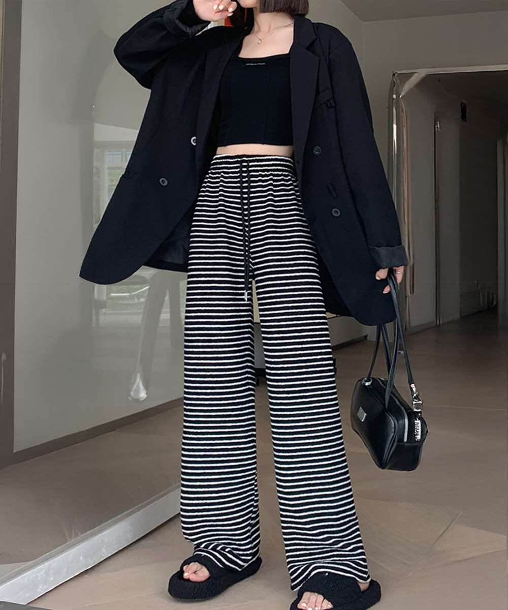 イージーパンツ ロング丈 ボーダー