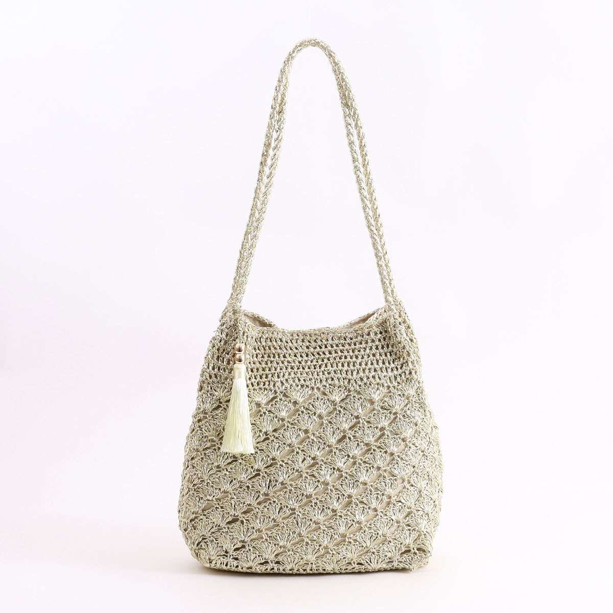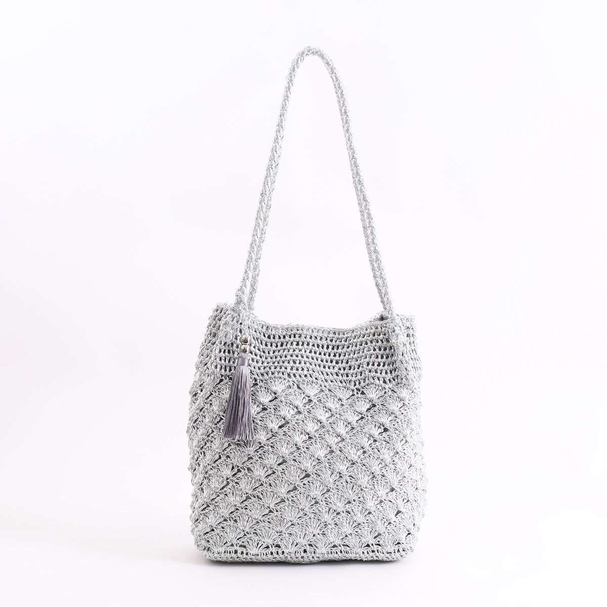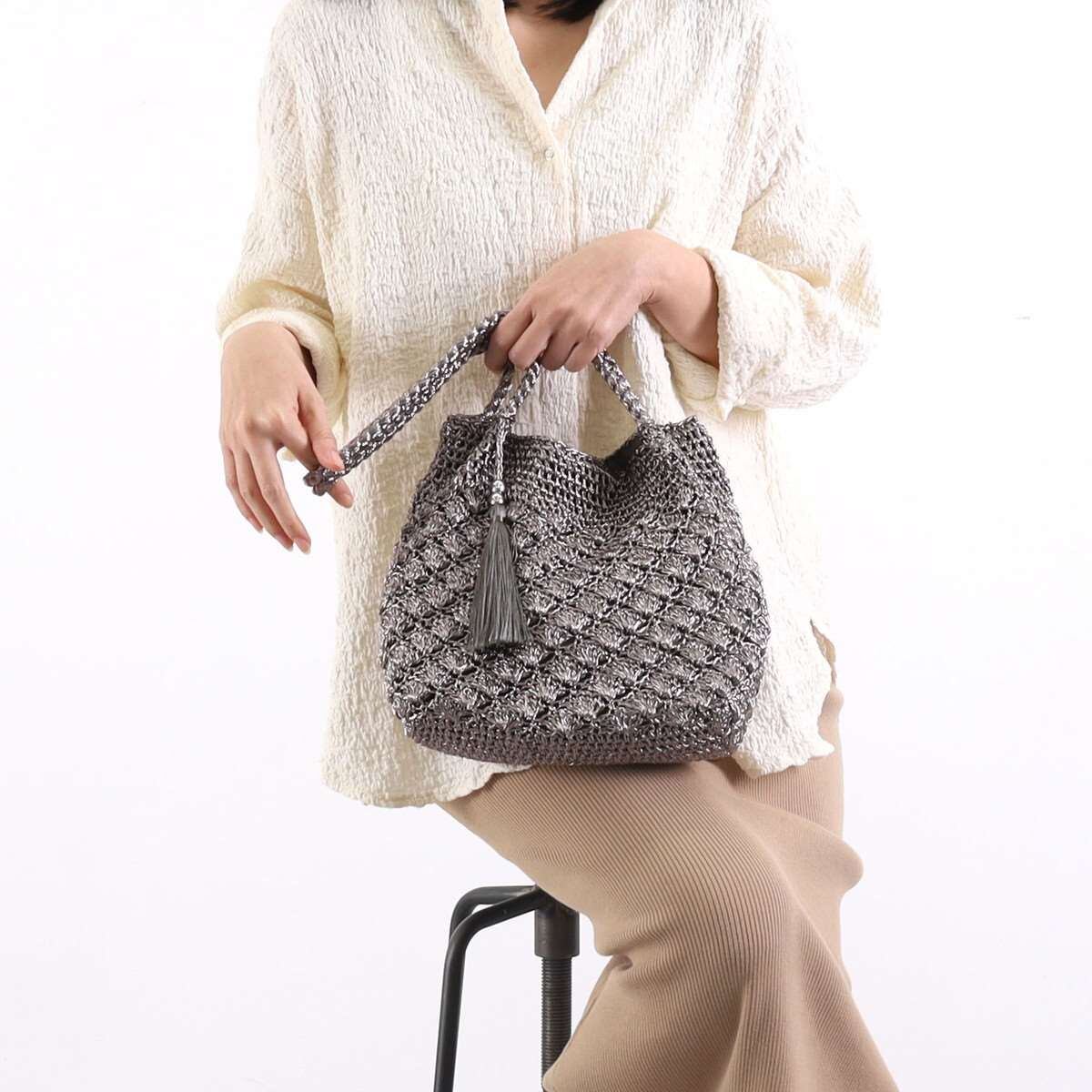 COOCO メタリック柄編み ロングハンドル トートバッグ