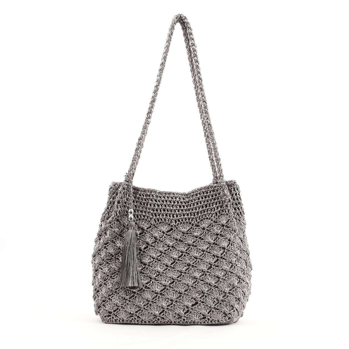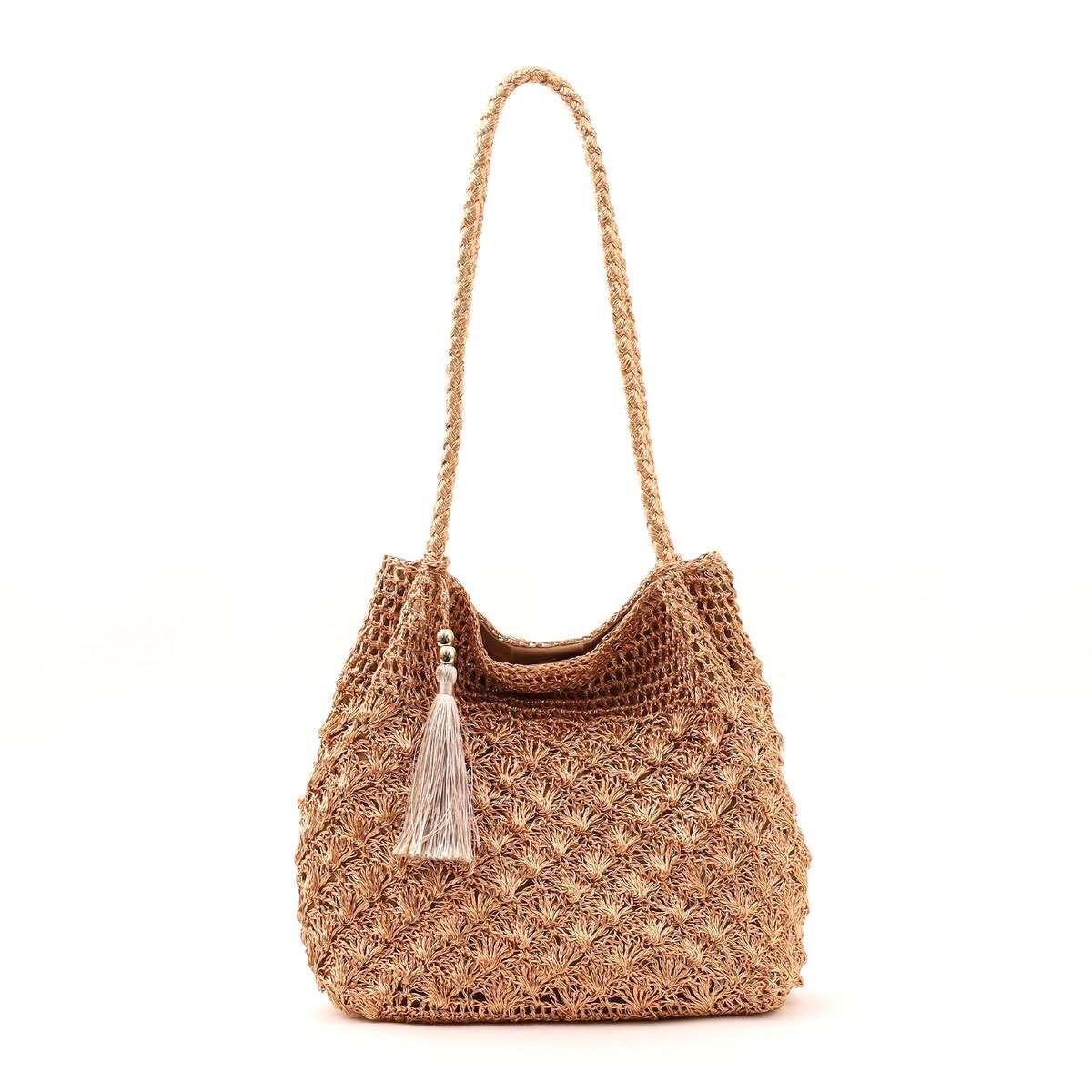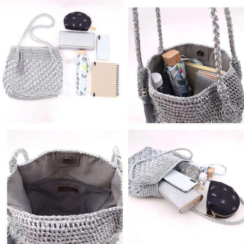 COOCO メタリック柄編み ロングハンドル トートバッグ