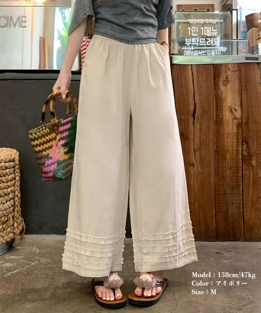 [L]着丈:約90cm 股下:約58cm ウエスト(ゴム仕様):約50-70cm ヒップ:約95cm もも周り:約56cm