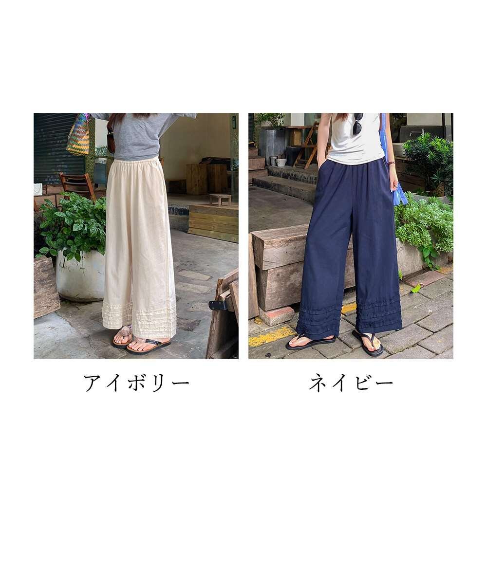 歩くたびに揺れるシルエットが、シンプルなコーデにさりげないニュアンスをプラスする。