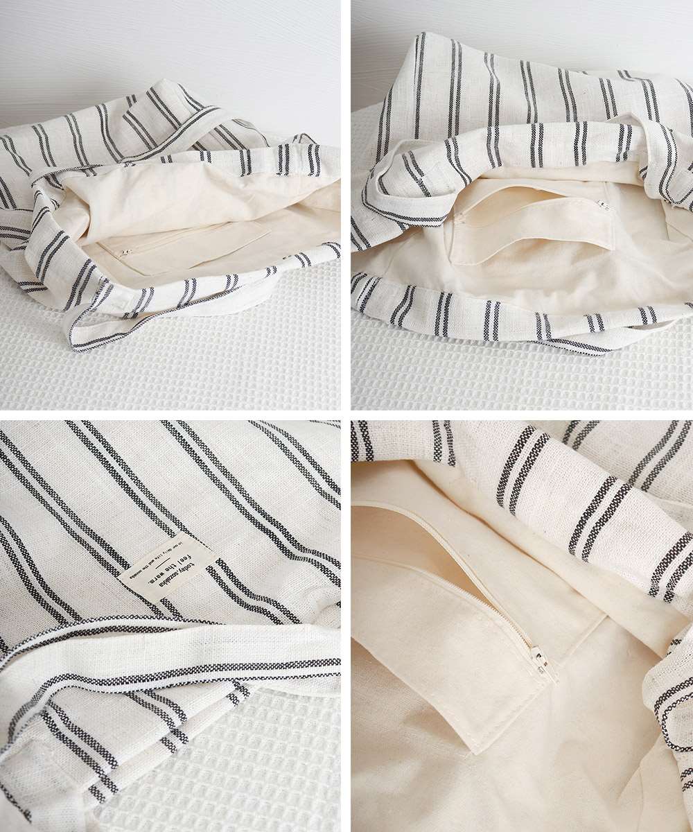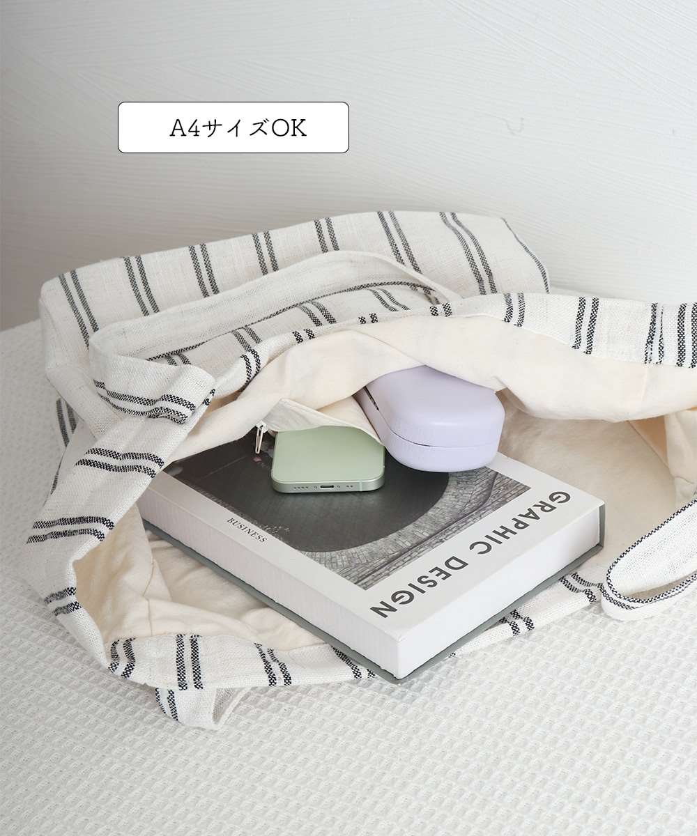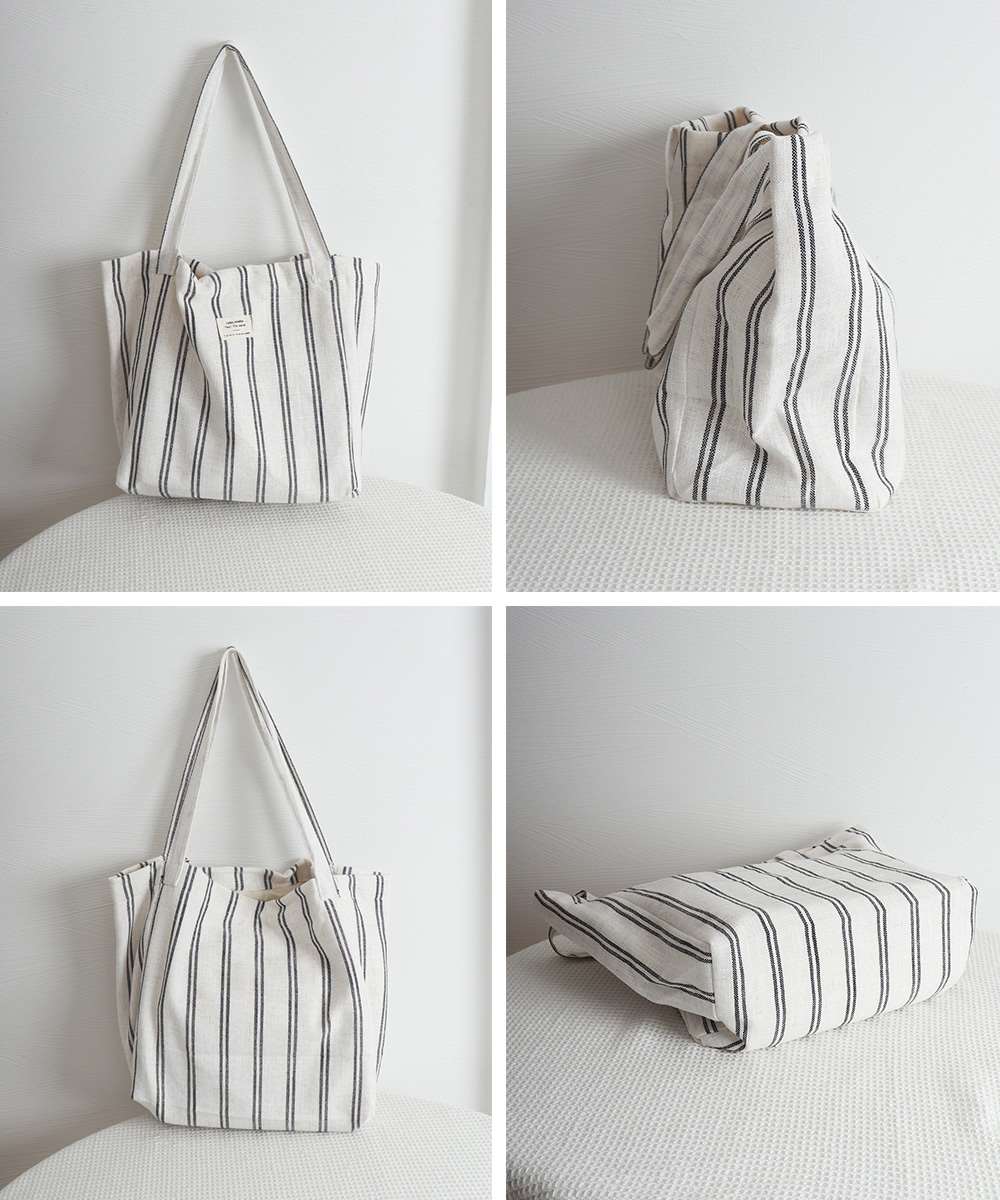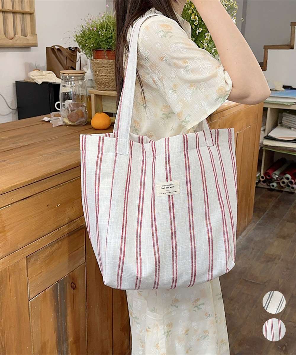 トートバッグ 綿麻 ストライプ柄 韓国風