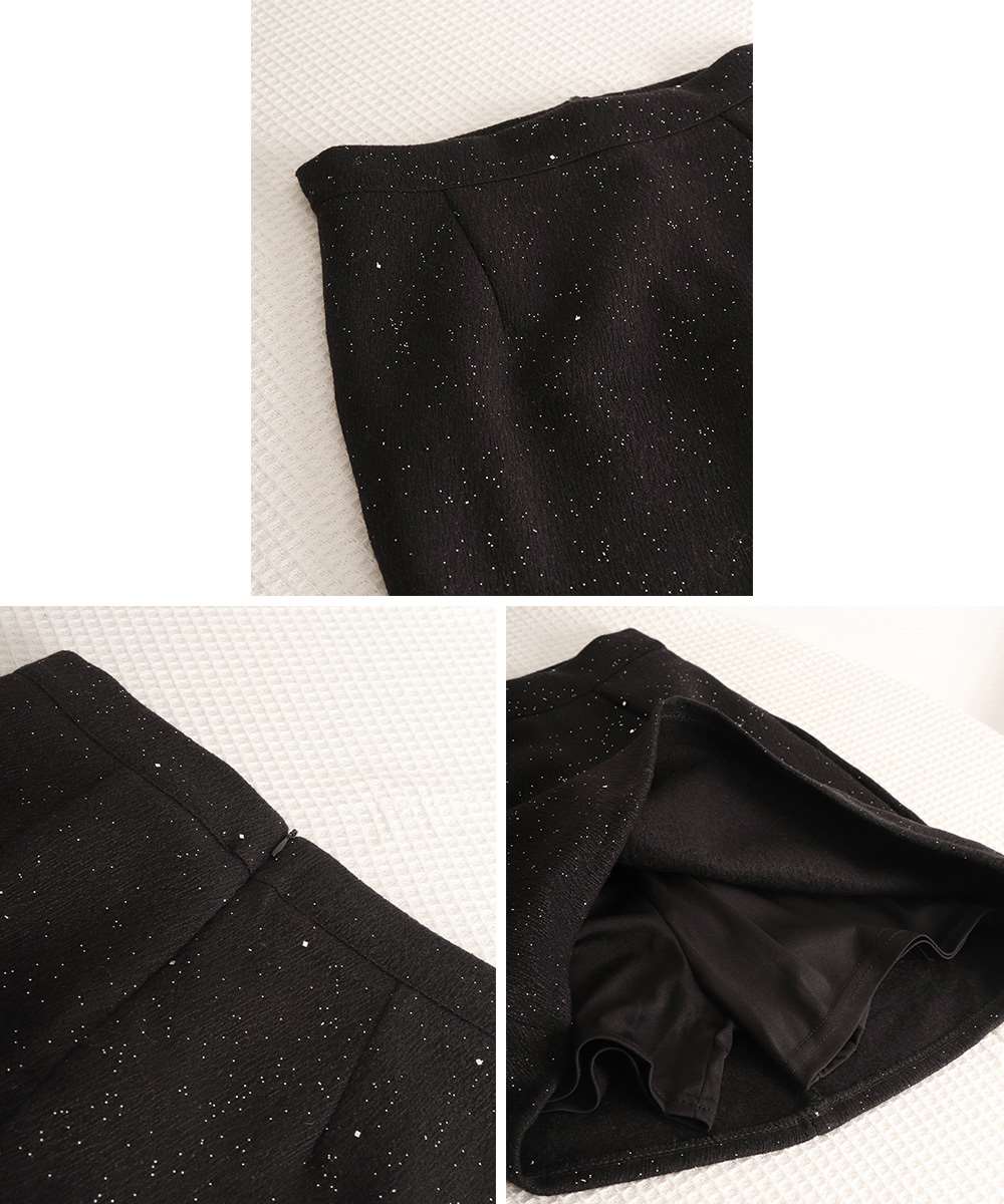 ラメ感のある生地がさりげなく上品な印象のミニスカート。