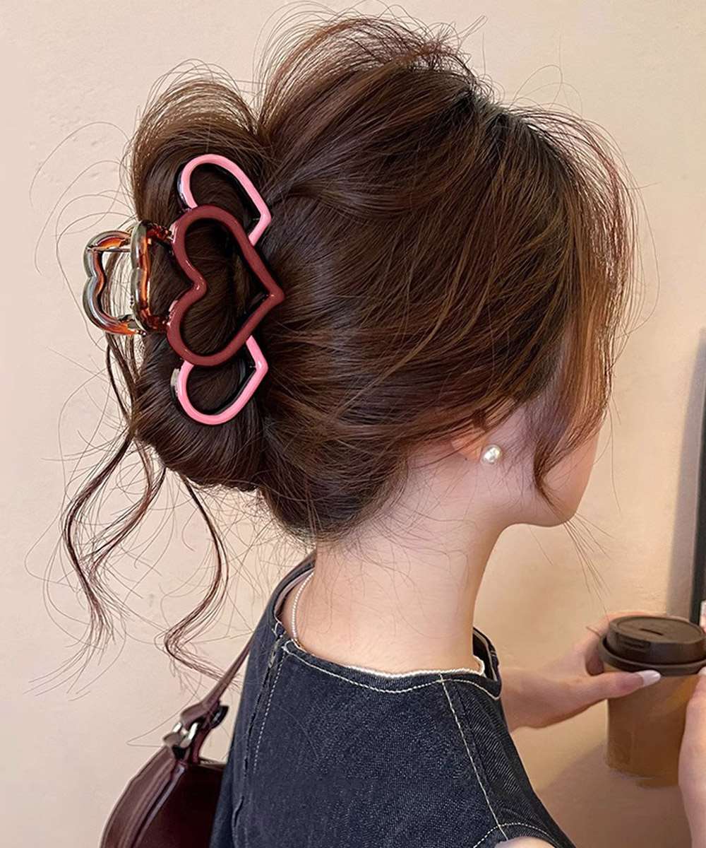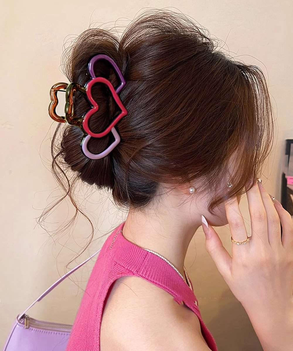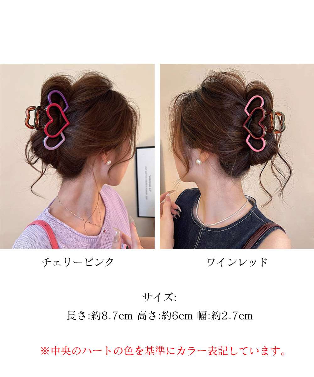 ハートモチーフのデザインが目を引く、マルチカラー仕様のバンスクリップ。