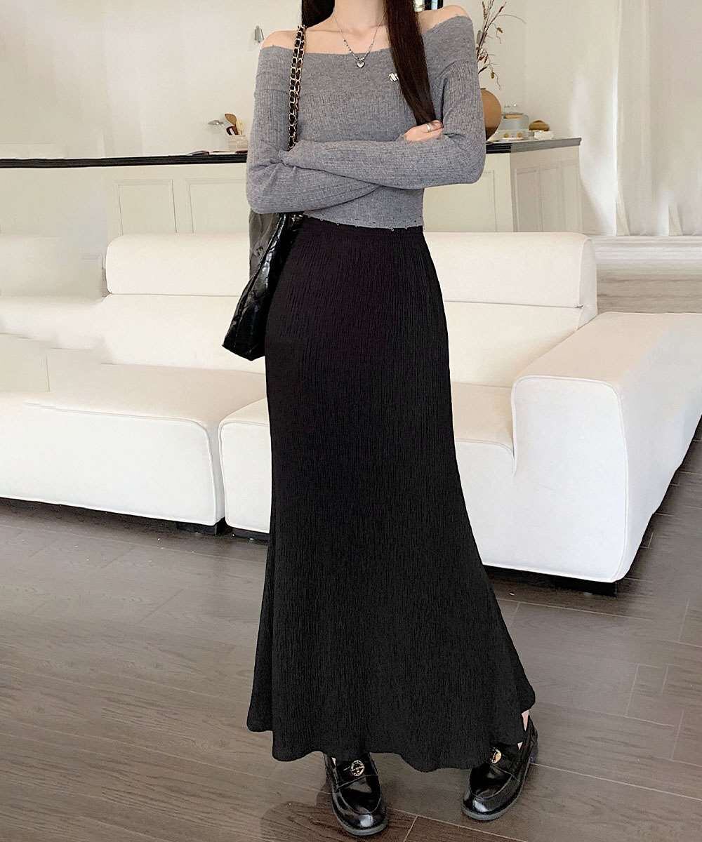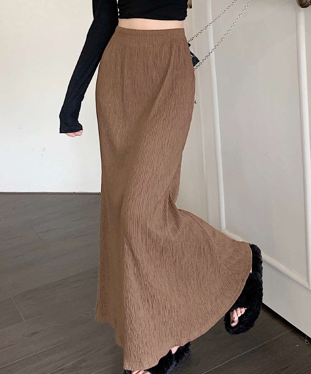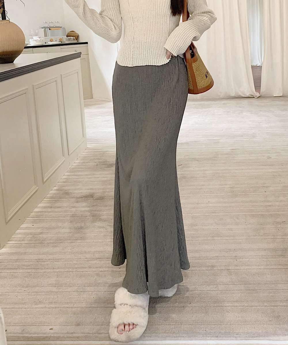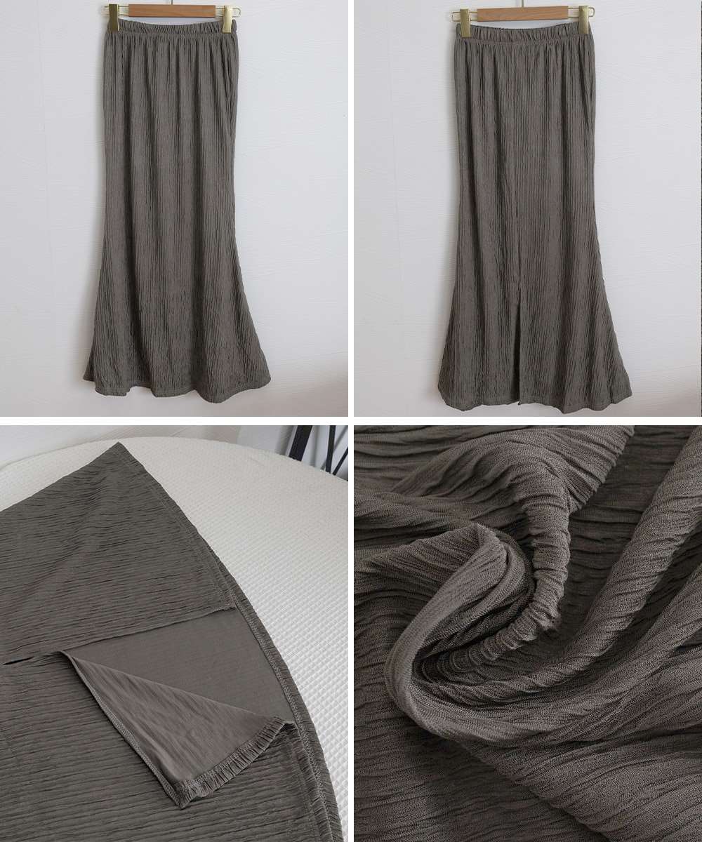 シワ加工を施した、軽やかな素材のロング丈スカート。