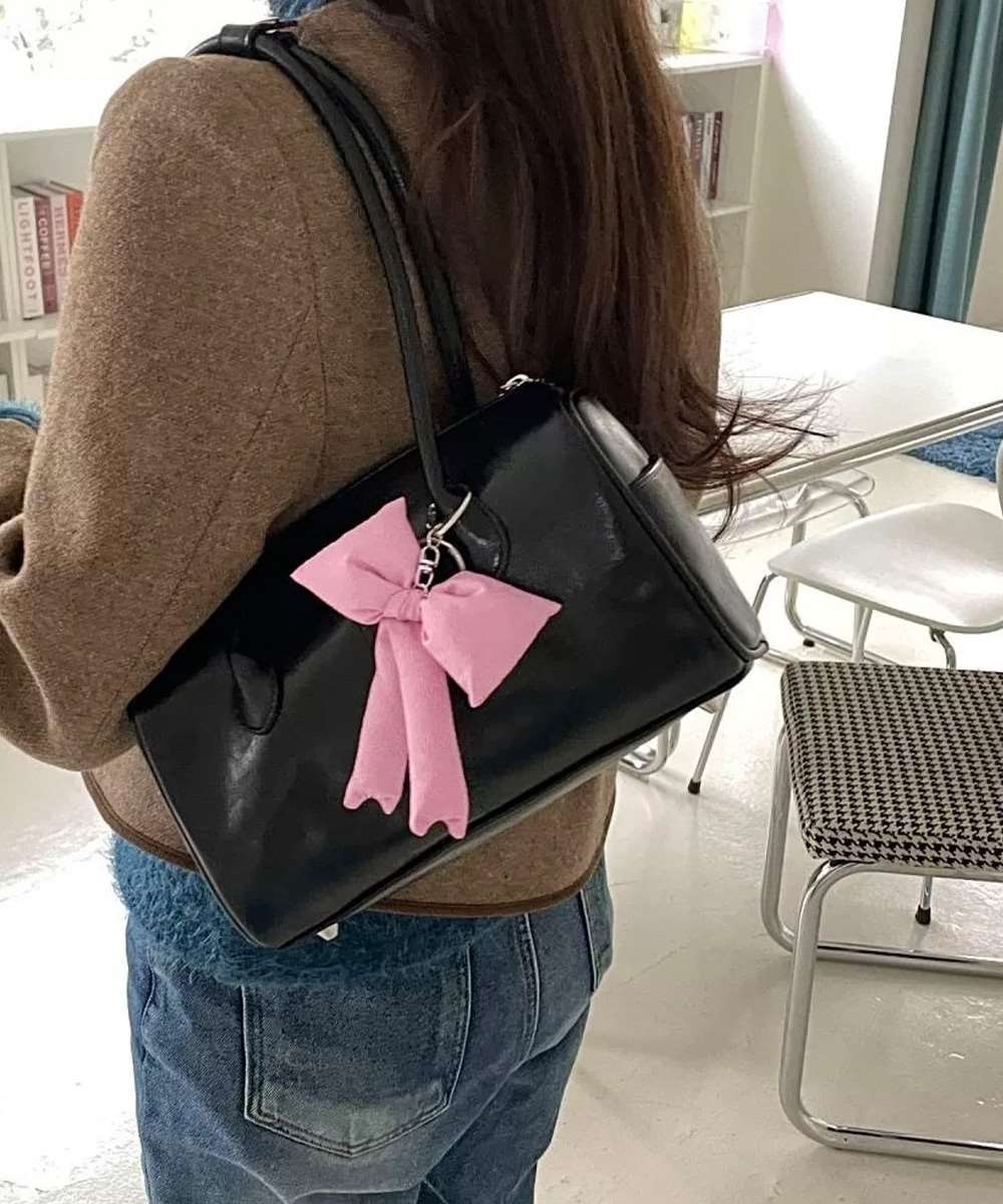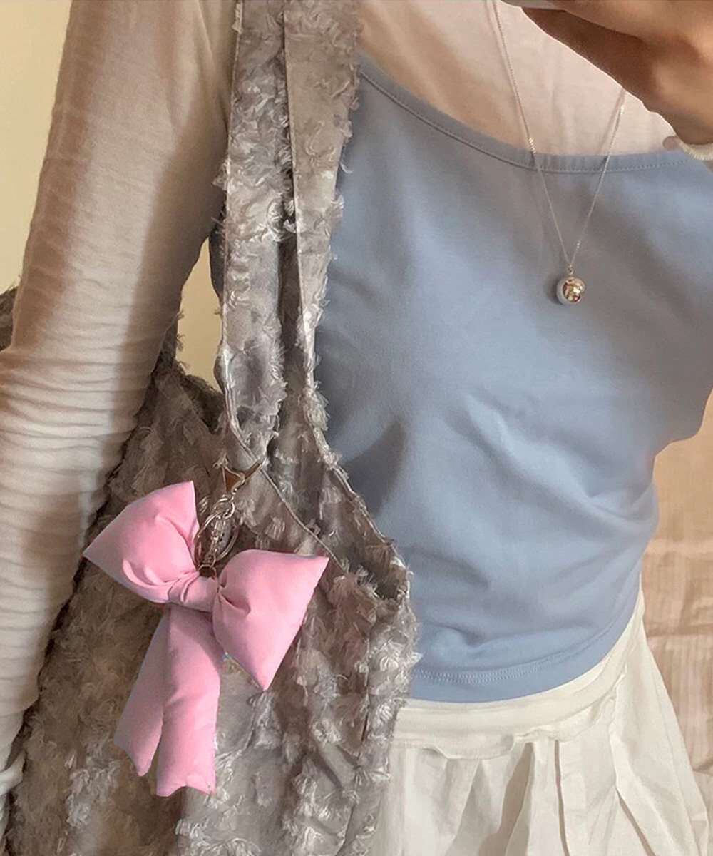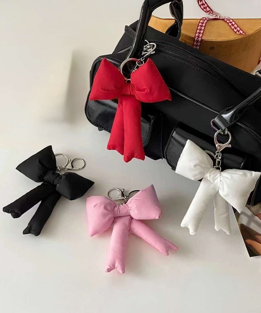 可愛さをプラスできる、ぷくぷくリボンの4色セットバッグチャーム。