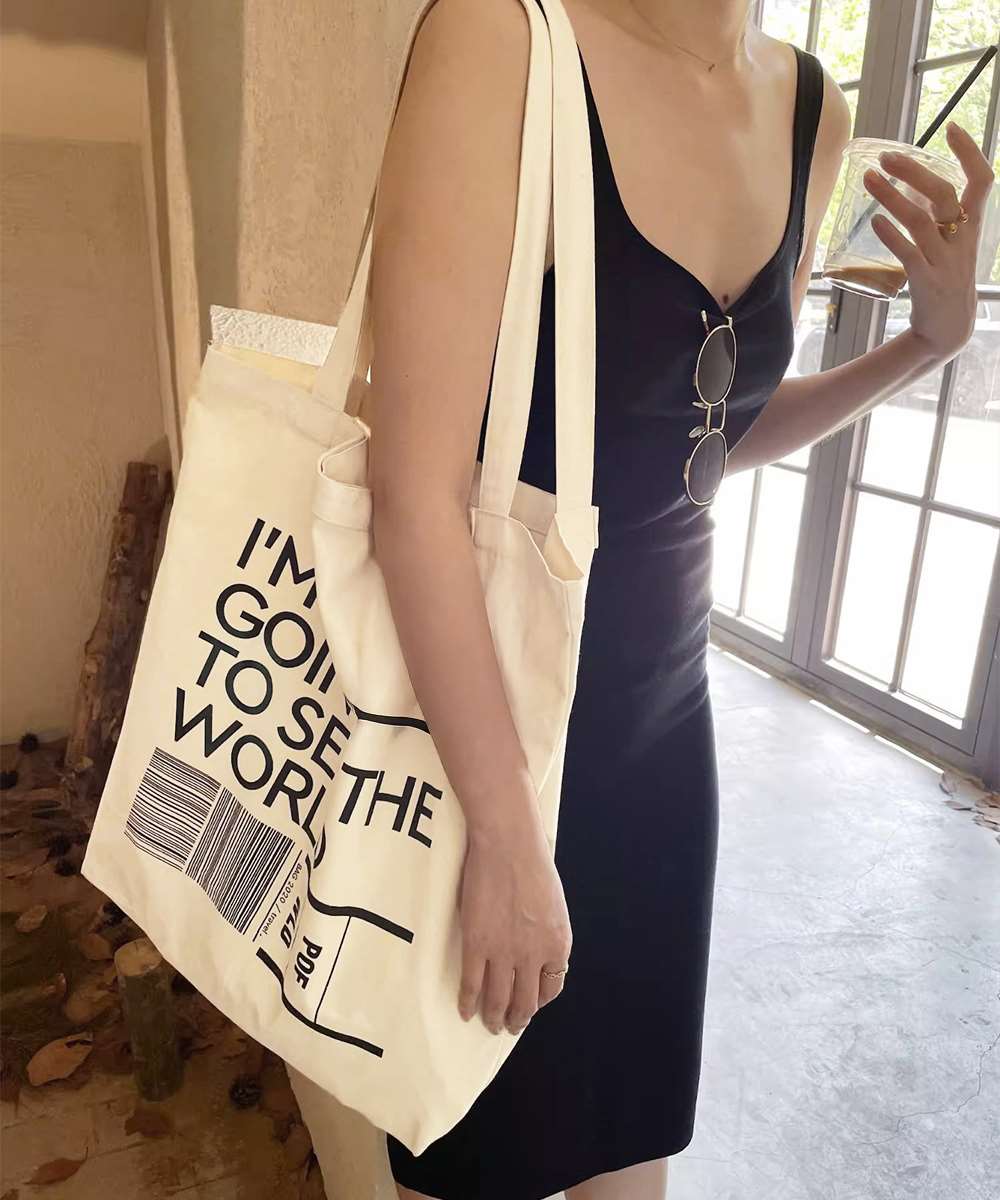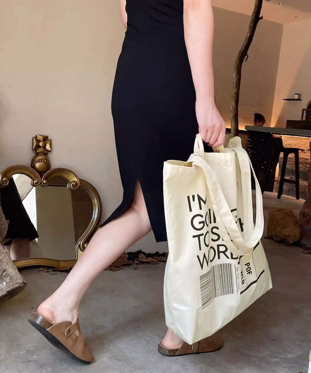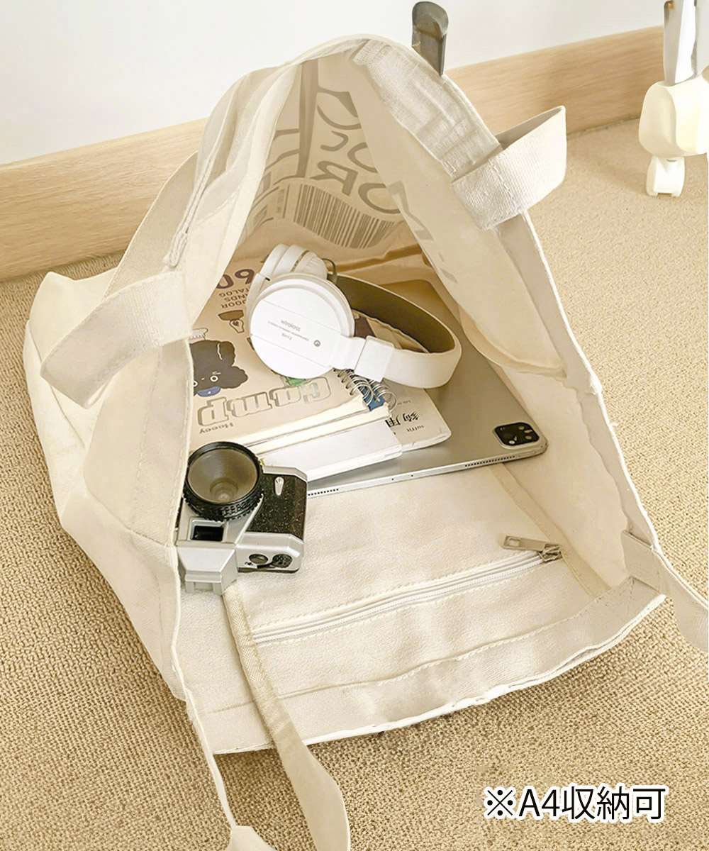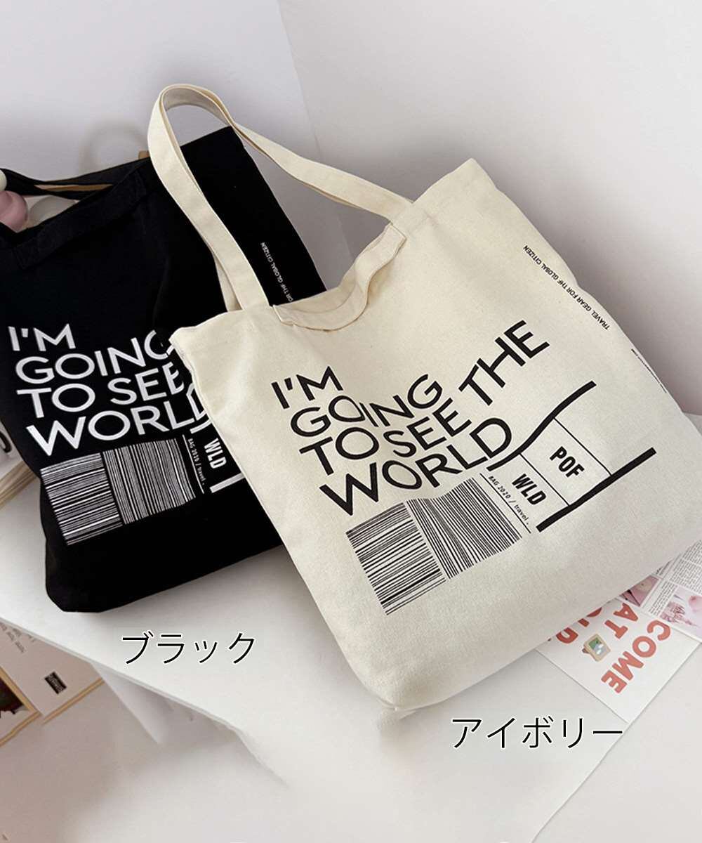 大容量サイズが魅力の、英字ロゴプリントがおしゃれなキャンバストートバッグ。