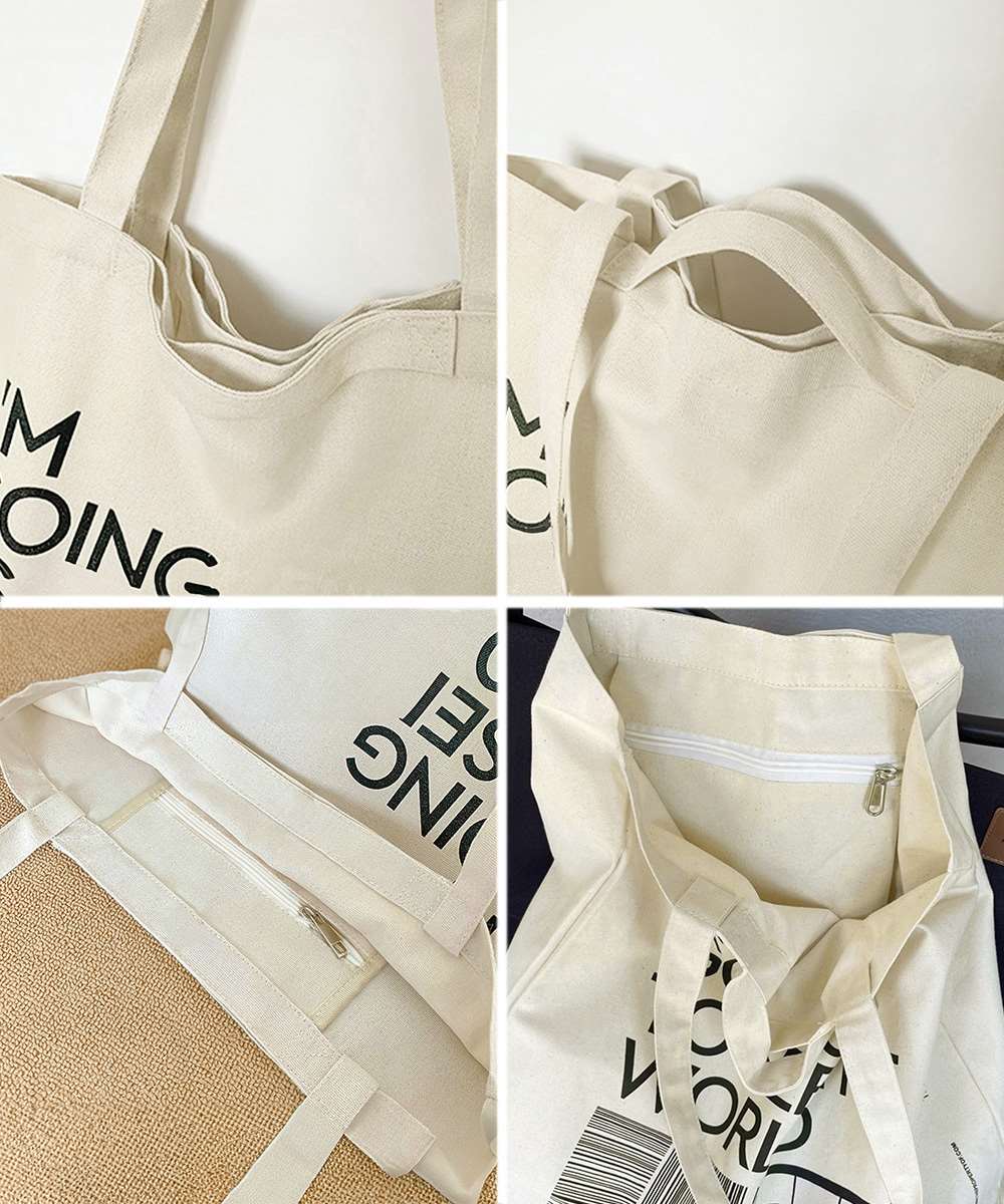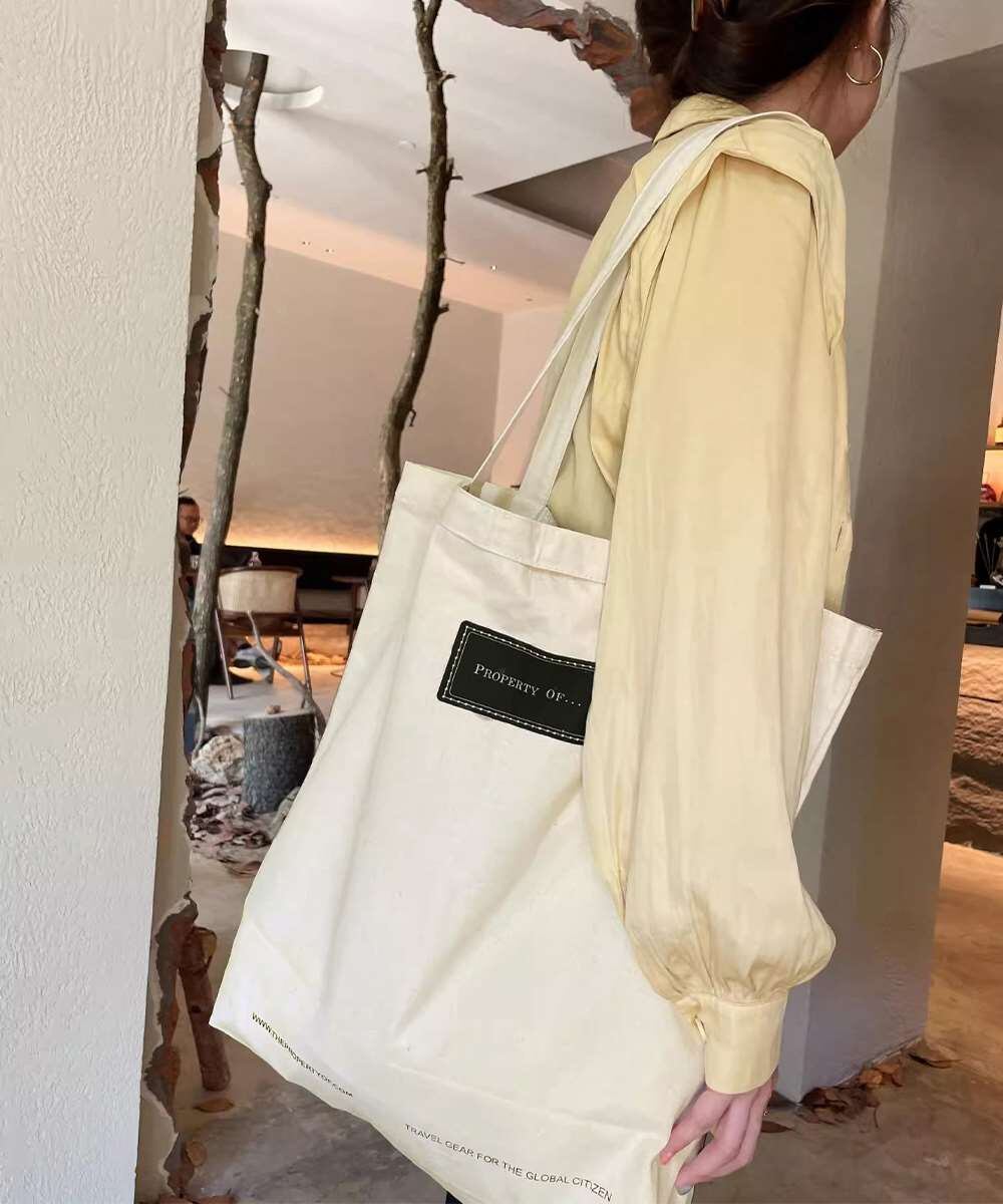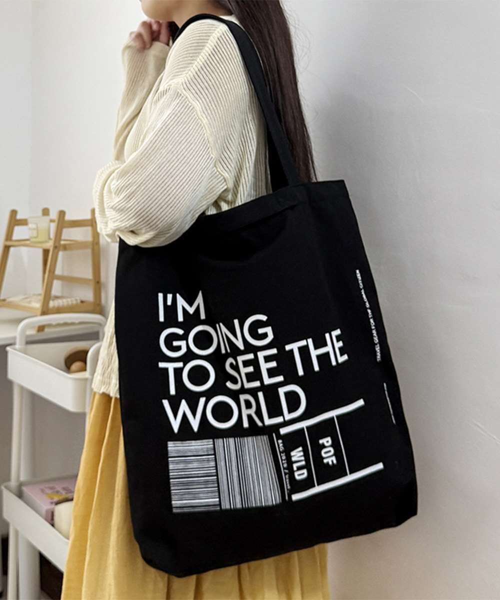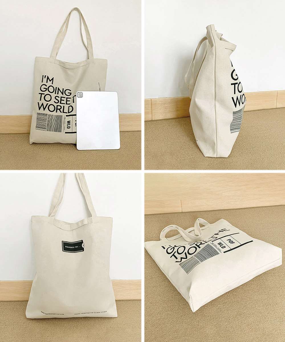 大容量サイズが魅力の、英字ロゴプリントがおしゃれなキャンバストートバッグ。