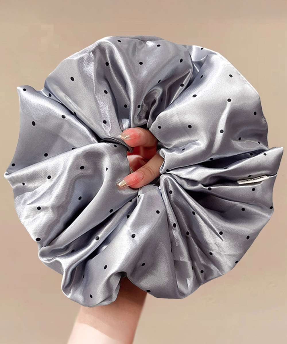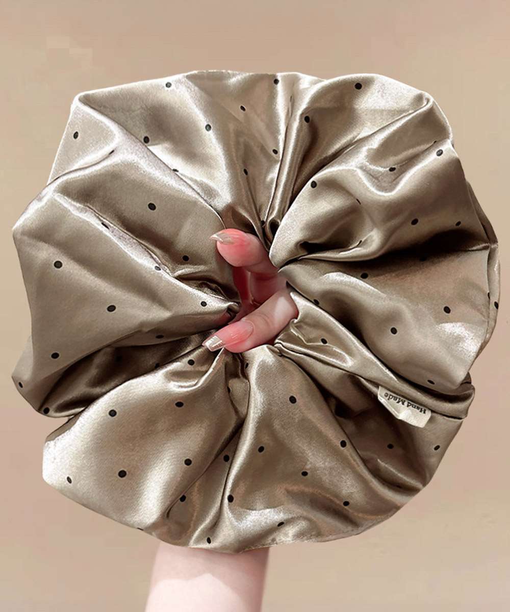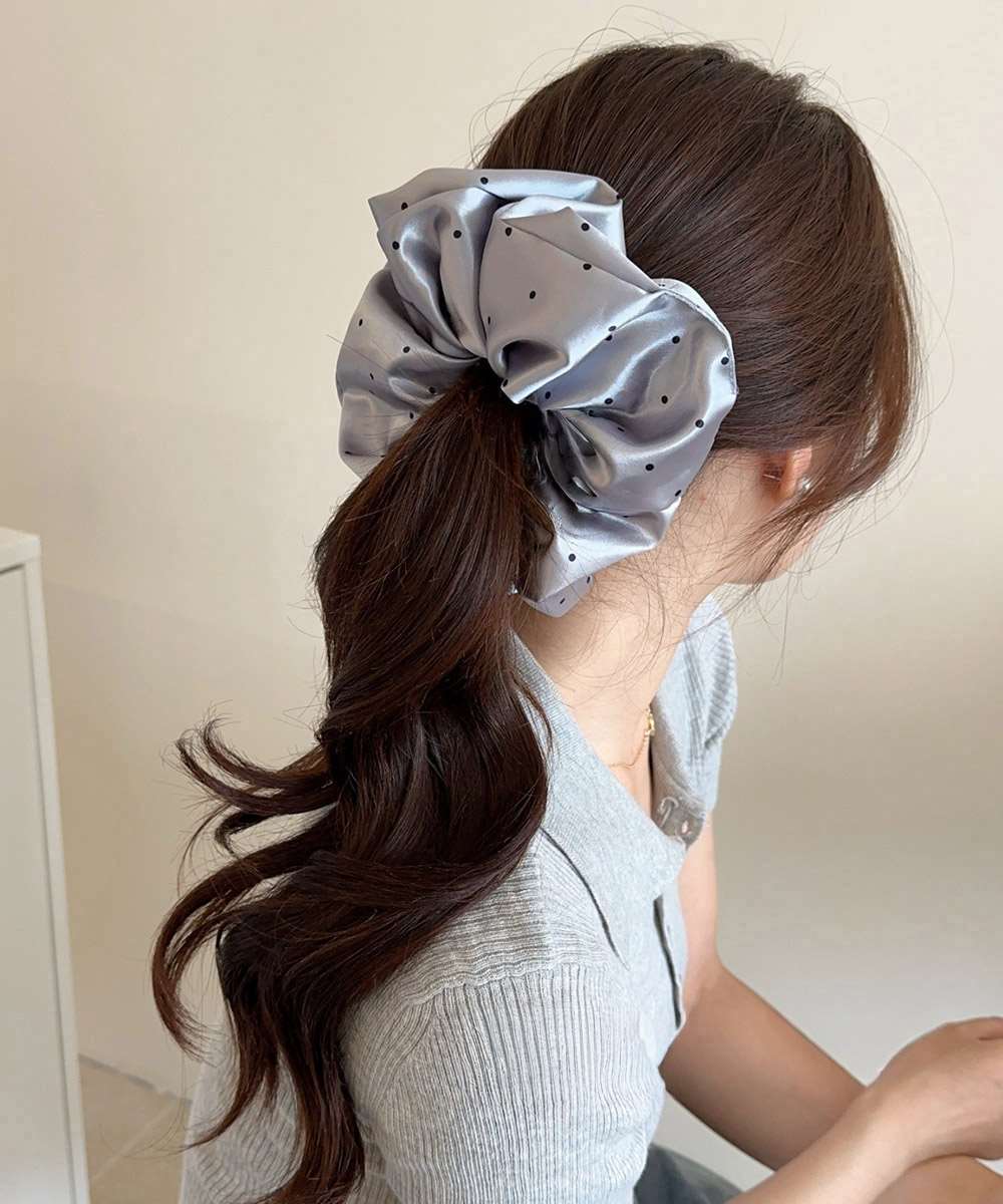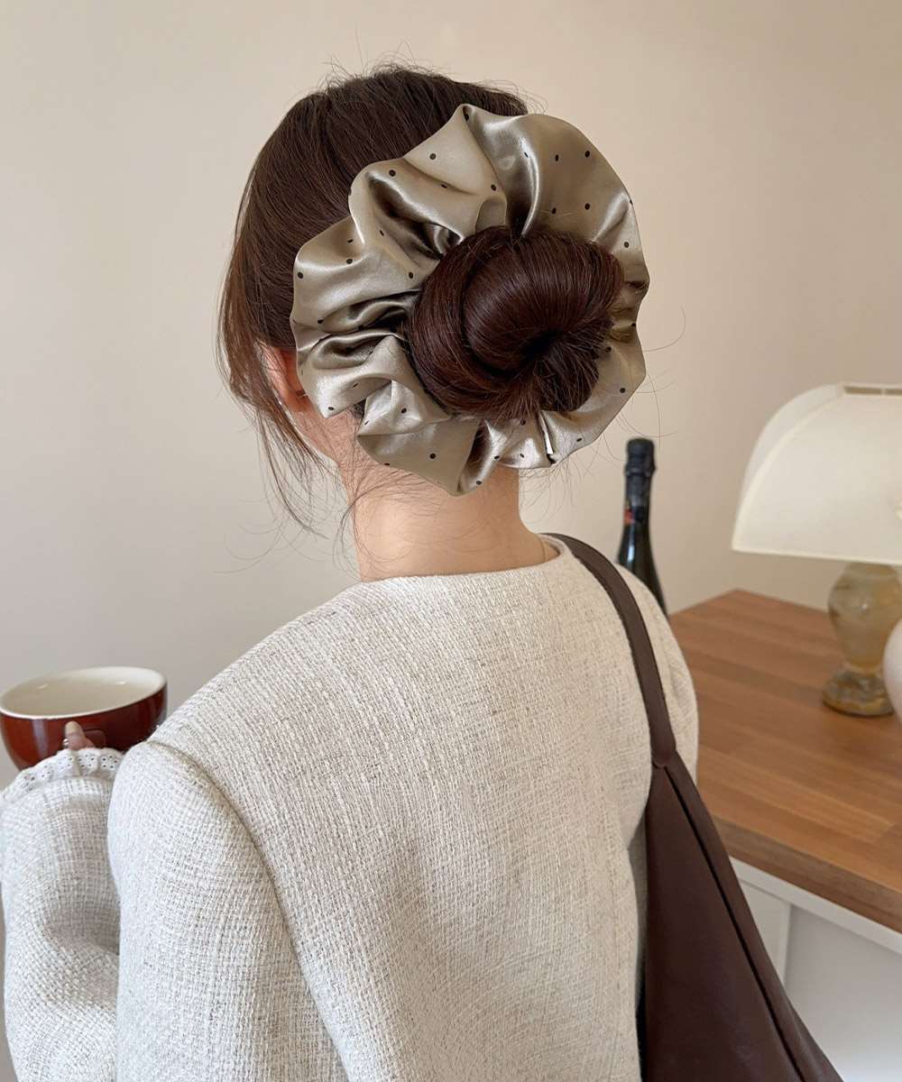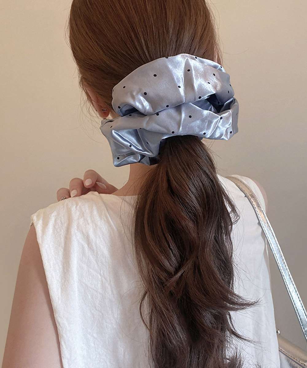 サテン素材を使用した、ボリューム感のある大判シュシュ。