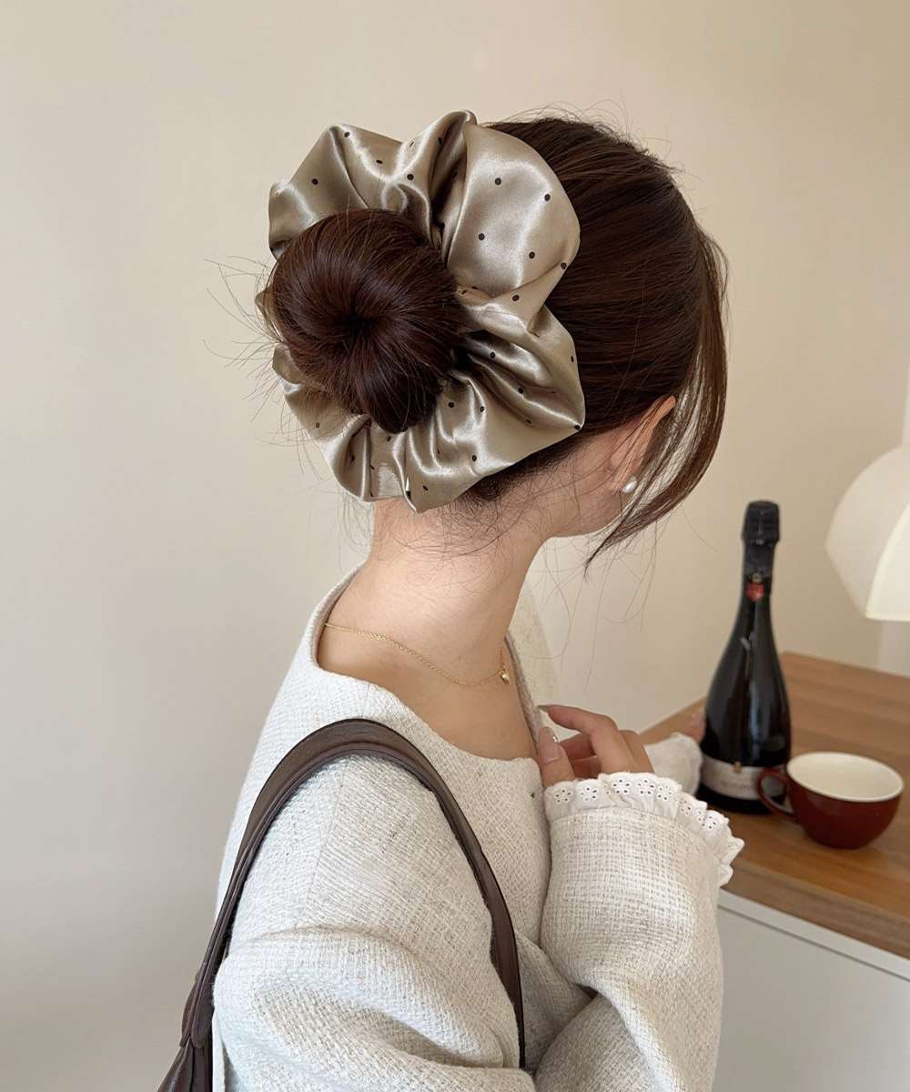 上品な光沢とドット柄がポイントで、まとめ髪にプラスするだけで一気にこなれた印象に。