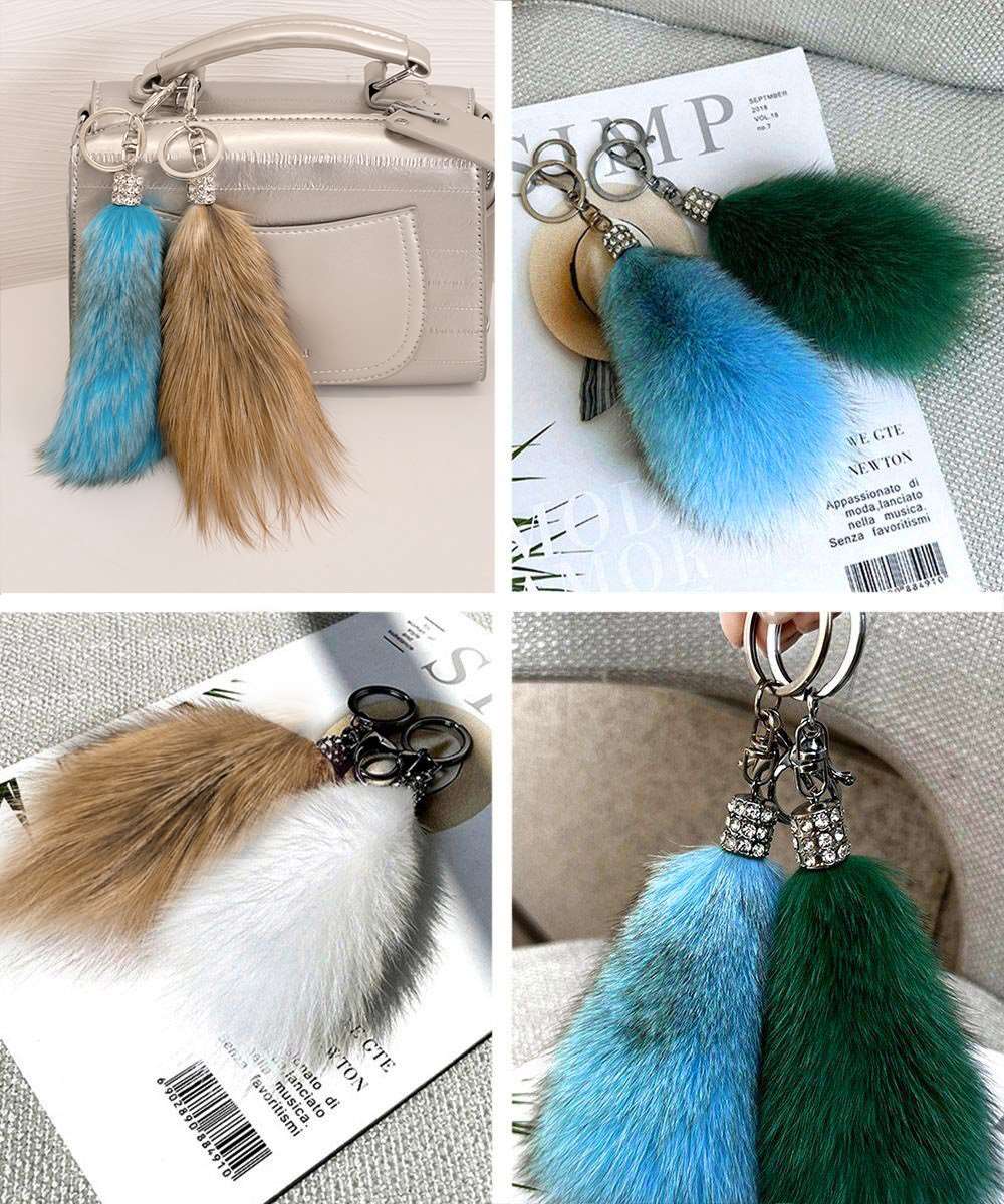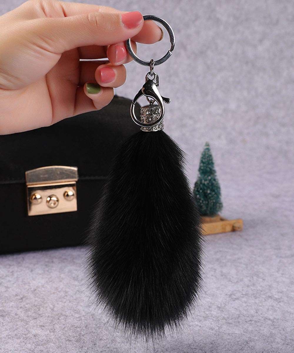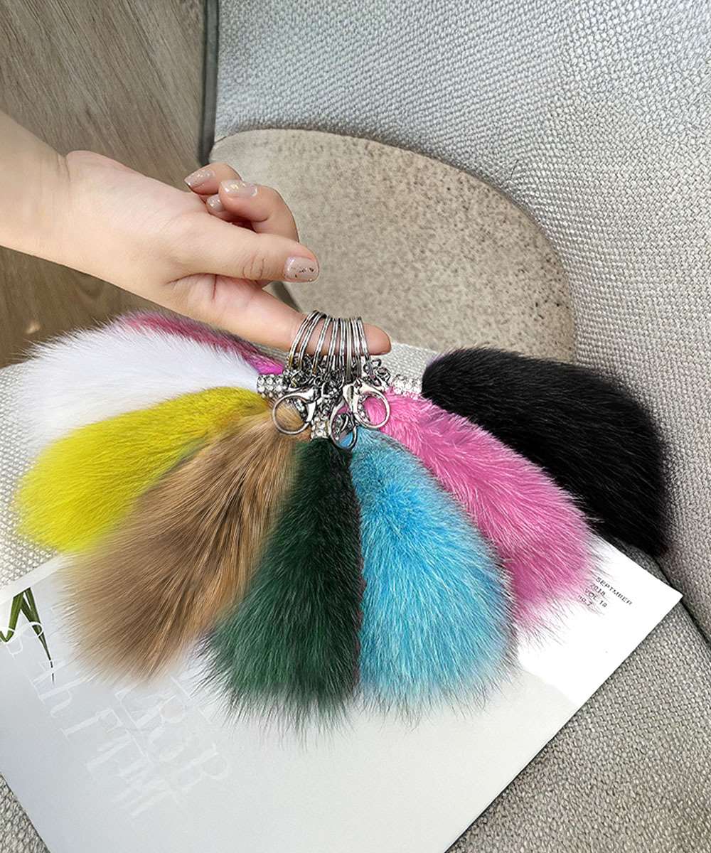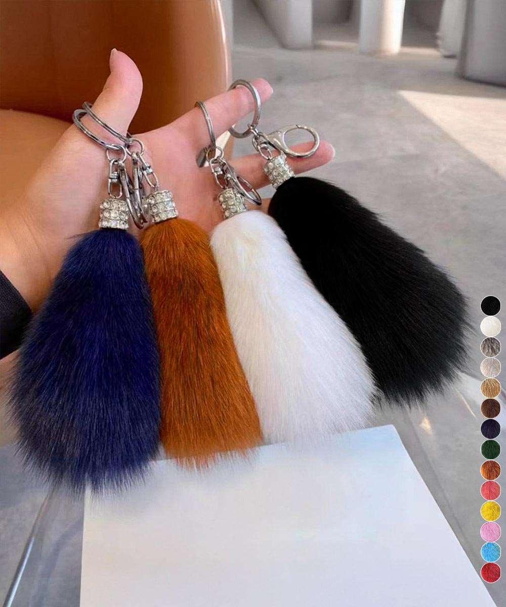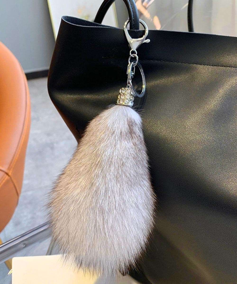 ふわふわのしっぽデザインが特徴のバッグチャームキーホルダー。