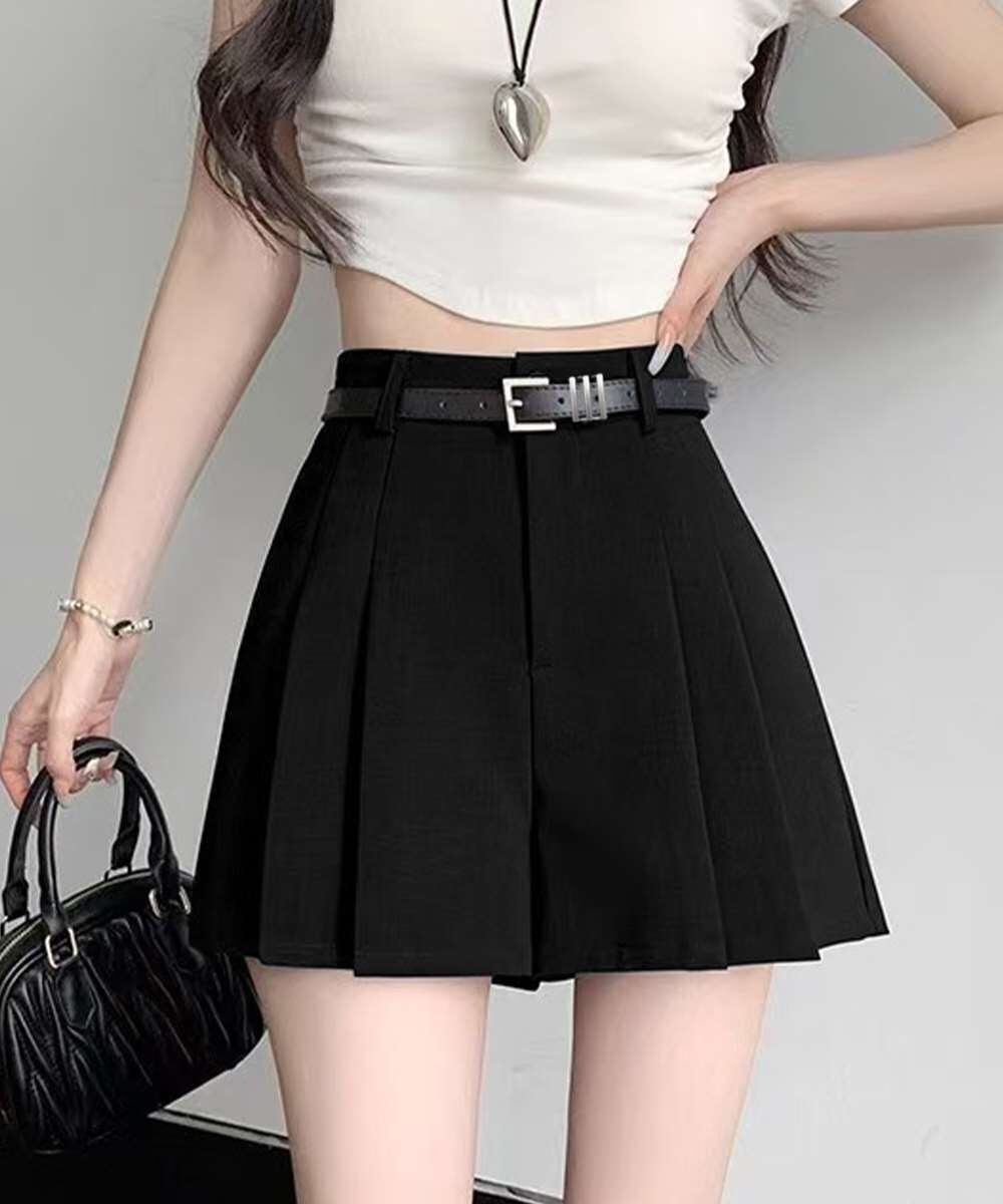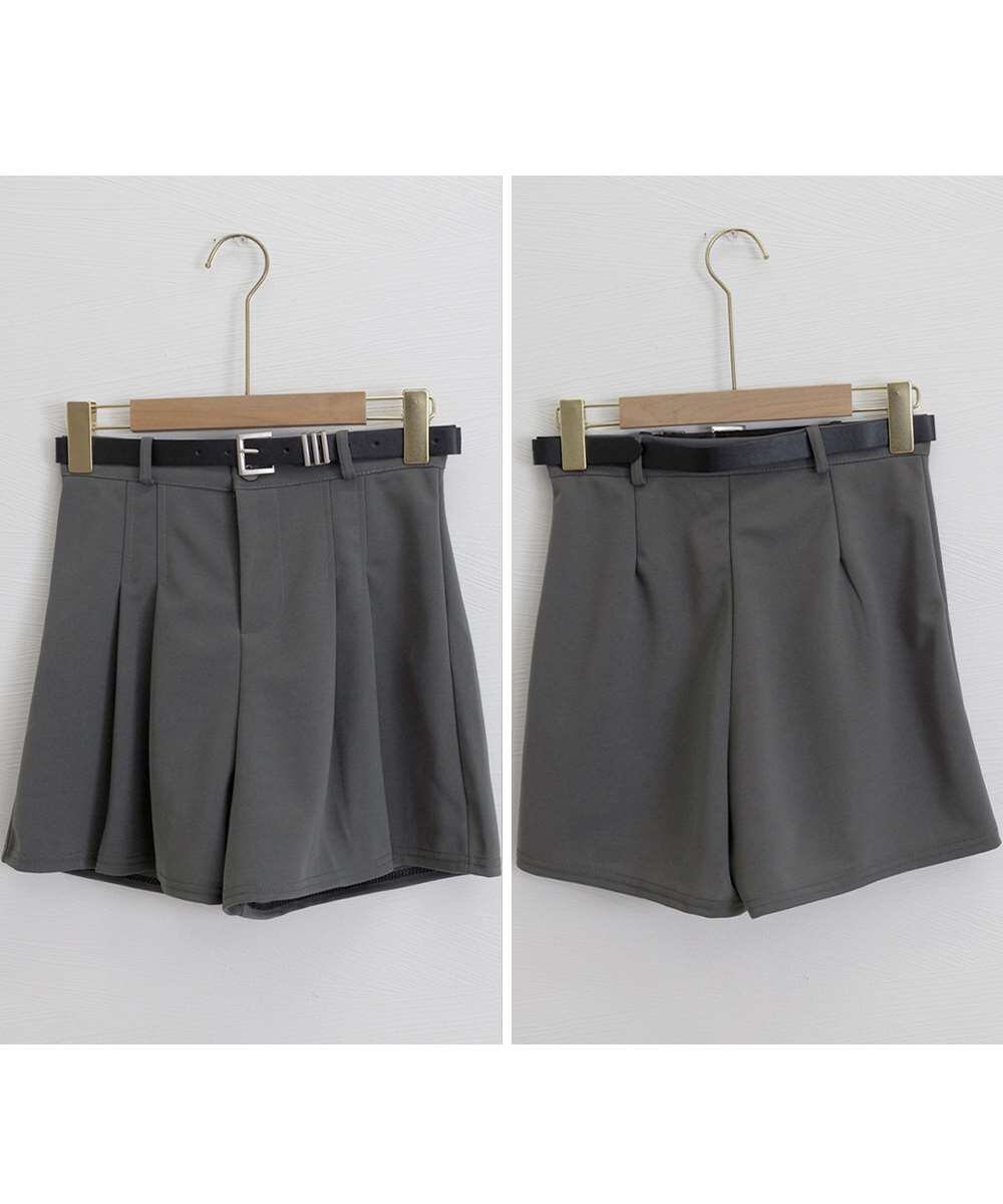 ベルト付 プリーツ ショートパンツ レディース