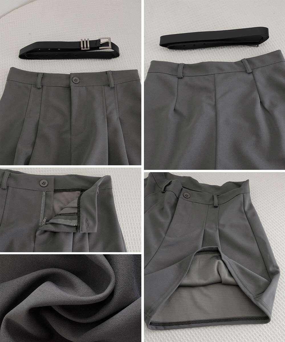 ベルト付きでウエストマークができ、脚長に見せてスタイルアップを演出。