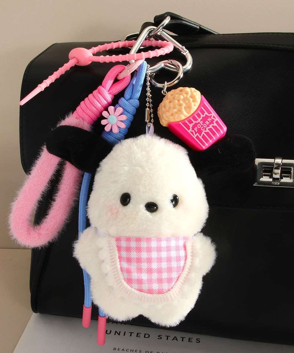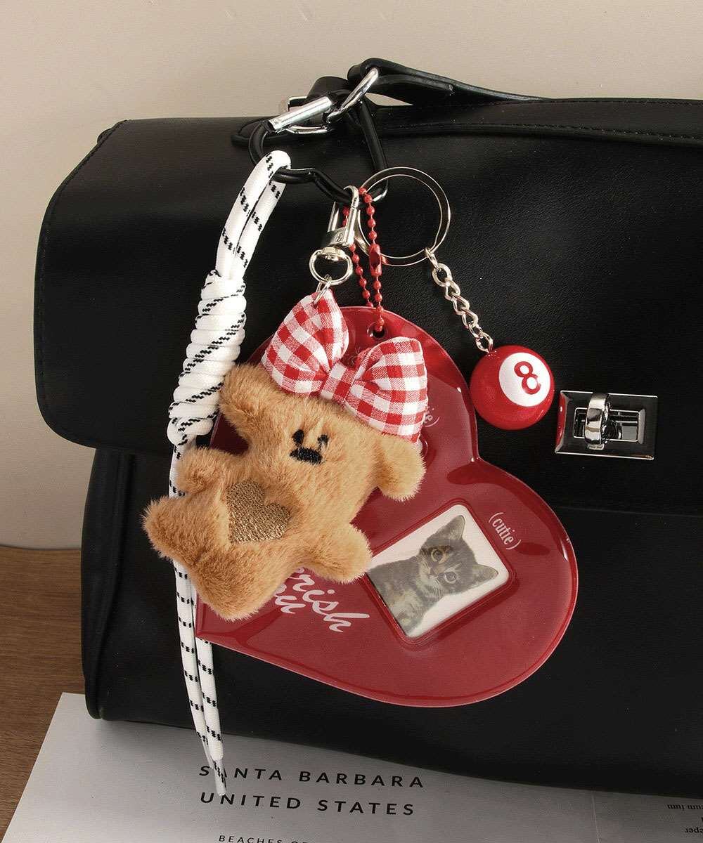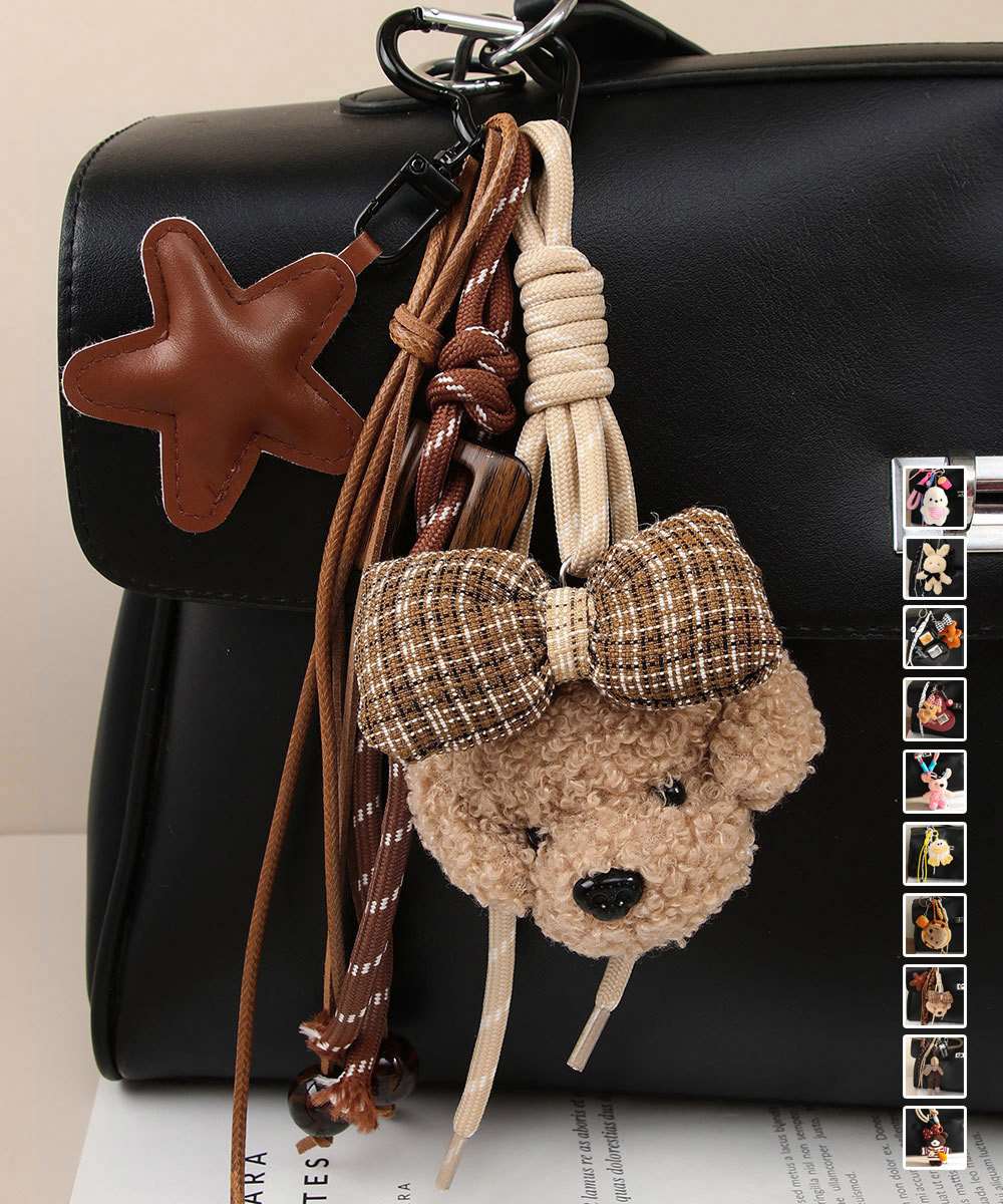 ぬいぐるみの愛らしさとヴィンテージ風デザインが融合した、プレゼントにも最適なバッグチャーム。