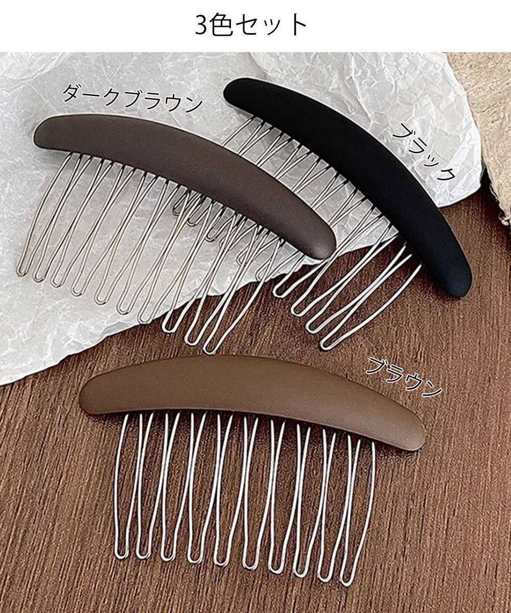 前髪やサイド、後れ毛を整える差し込みタイプのヘアコーム型ヘアアクセサリー3色セット。
