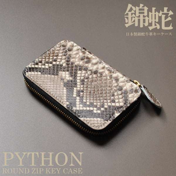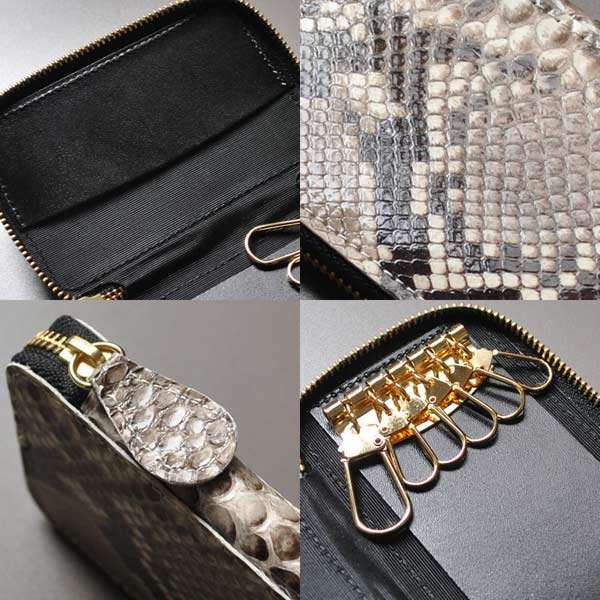 日本国産 キーケース ダイヤモンドパイソン レザー 6連 ラウンドファスナー 日本製 錦蛇革×牛革