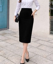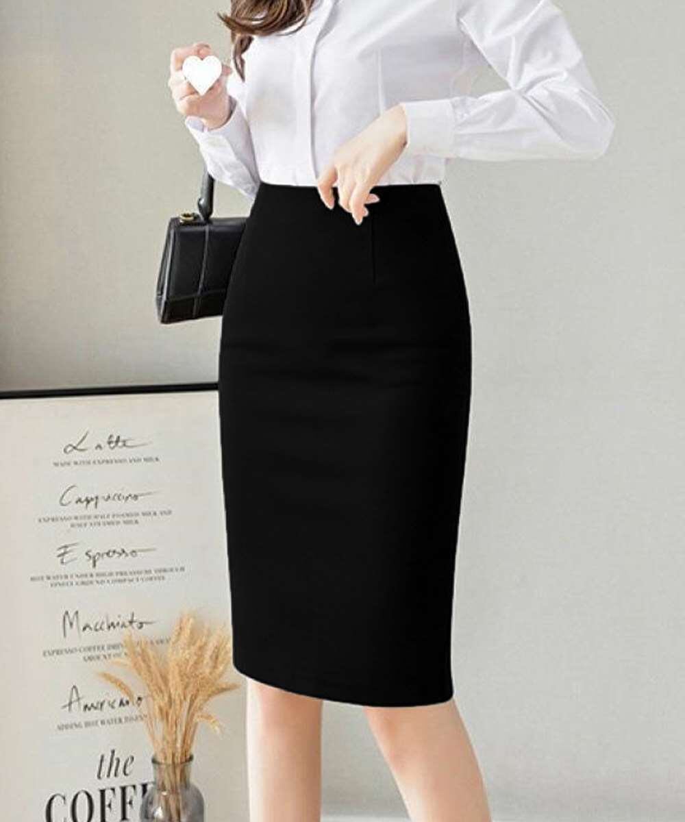 通勤スタイルに活躍する、ハイウエストデザインのレディースタイトスカート。