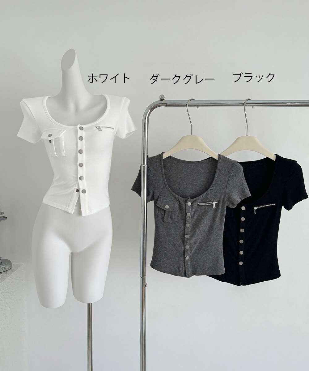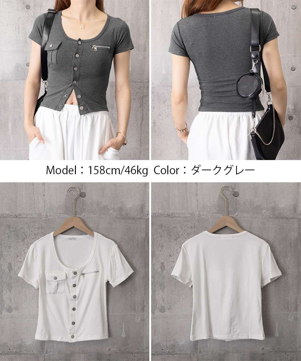 レディース フロントボタン Y2Kカットソー スクエアネック 華奢見えタイトTシャツ くびれ見え デコルテ見せ夏服着やせ