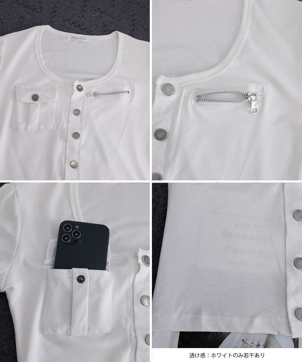 ポケット風ディテール×ジップデザインがアクセントになり、シンプルなのに一枚でサマ見え。
