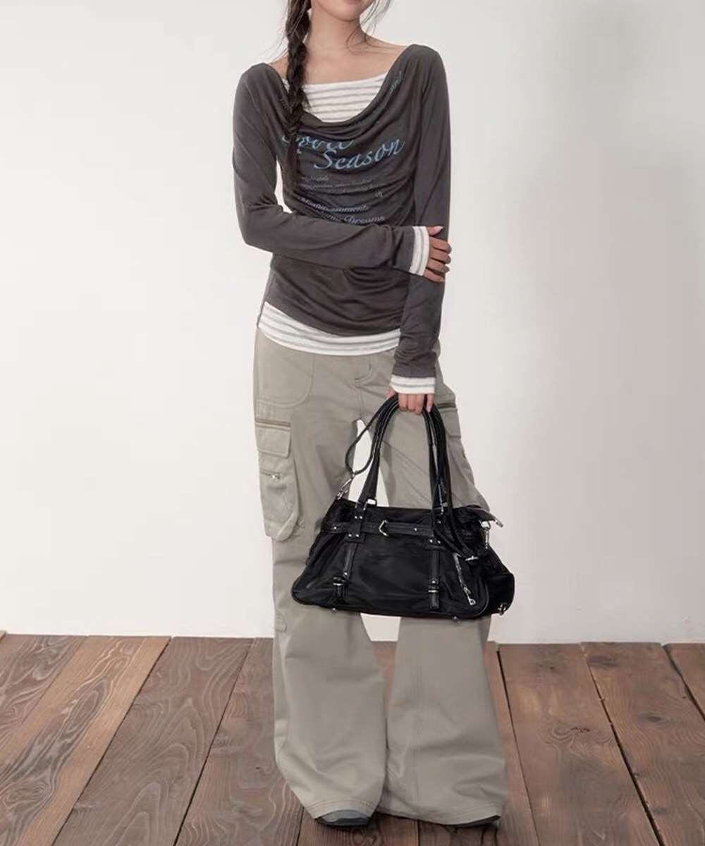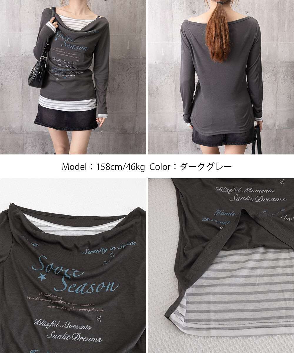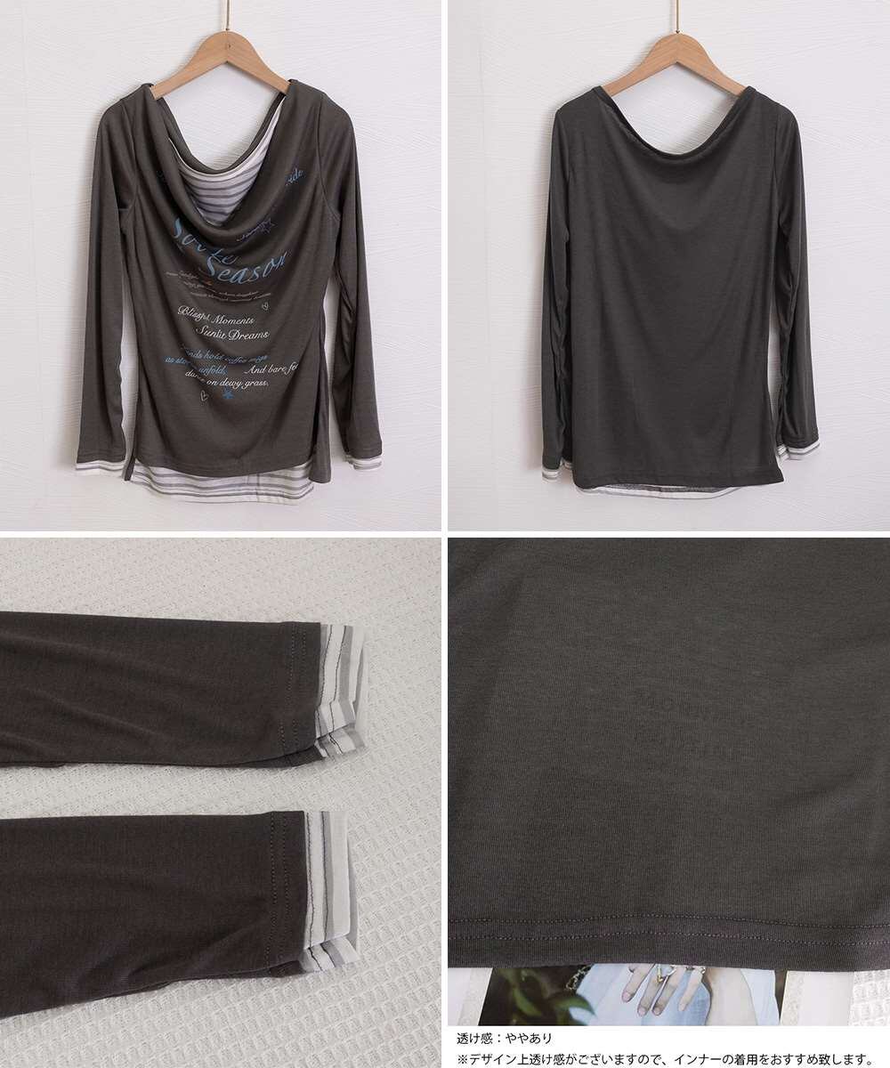 ドレープネック トップス レイヤード風 ロゴT