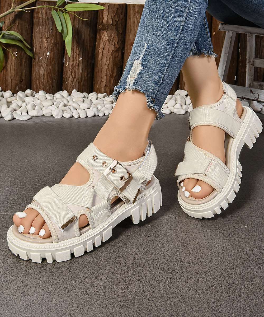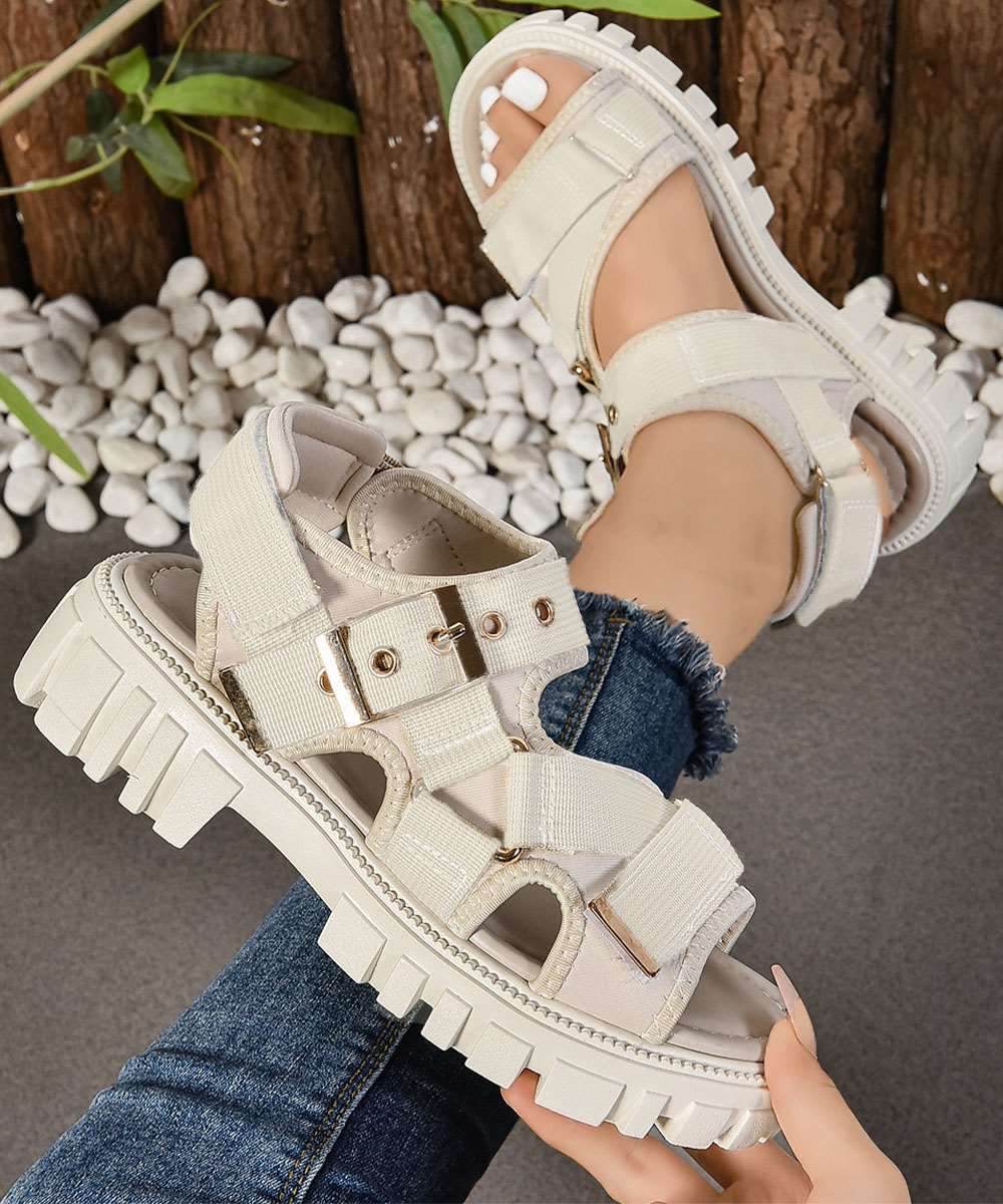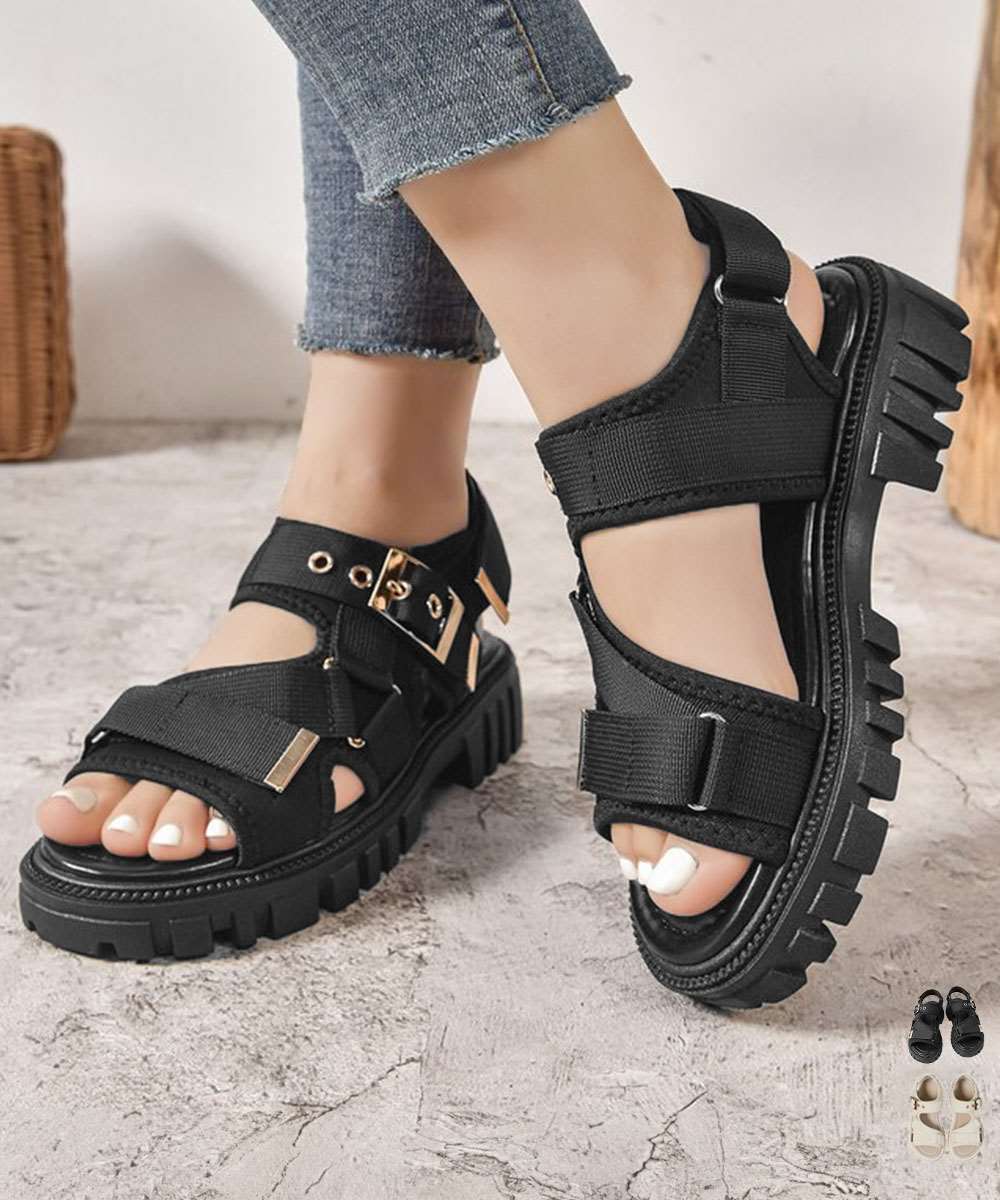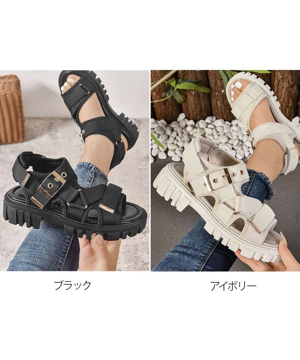 ベルト付きスポサン レディース 疲れにくい厚底サンダル 歩きやすい夏靴マジックテープ 美脚 痛くない アウトドアシューズ
