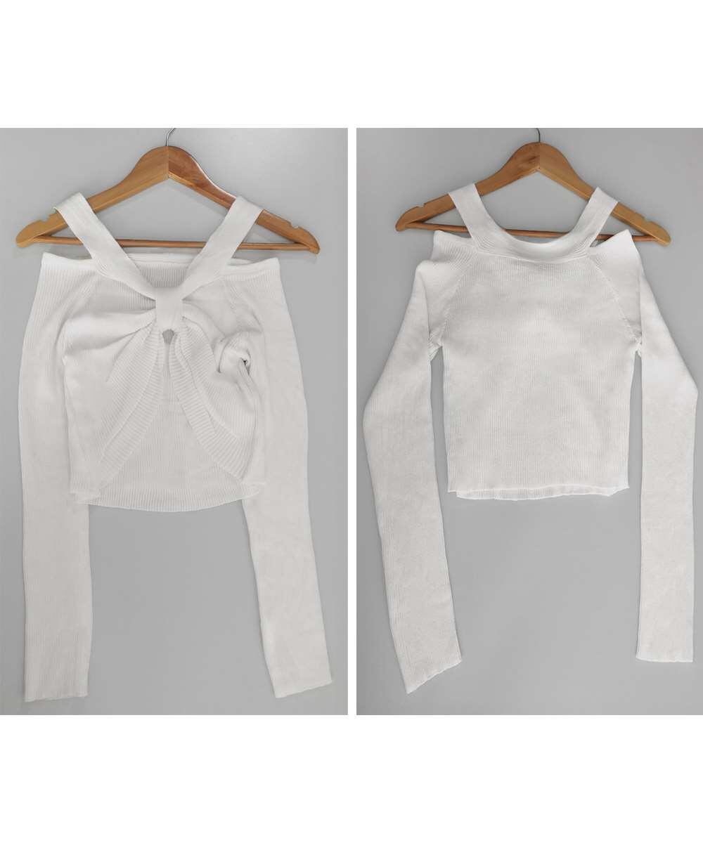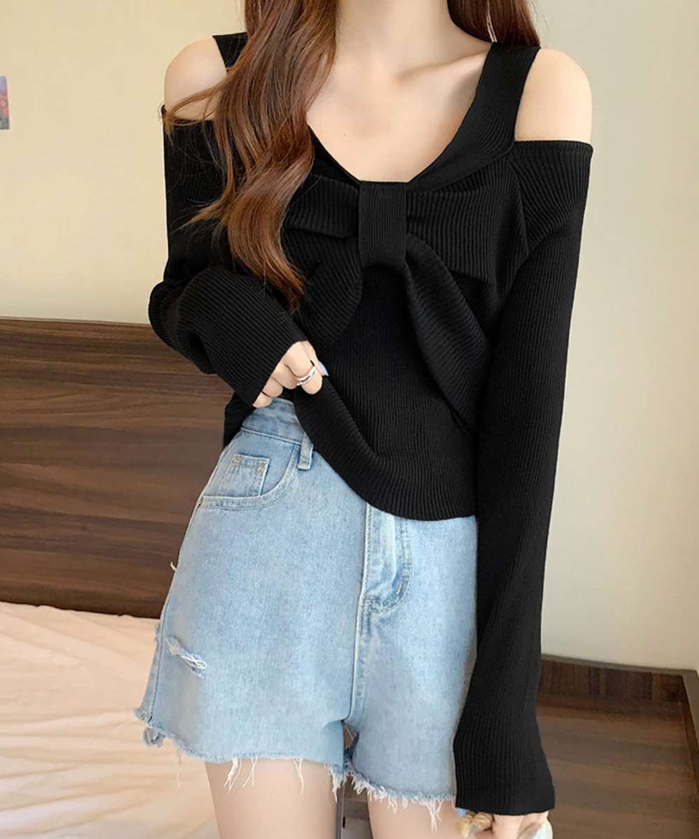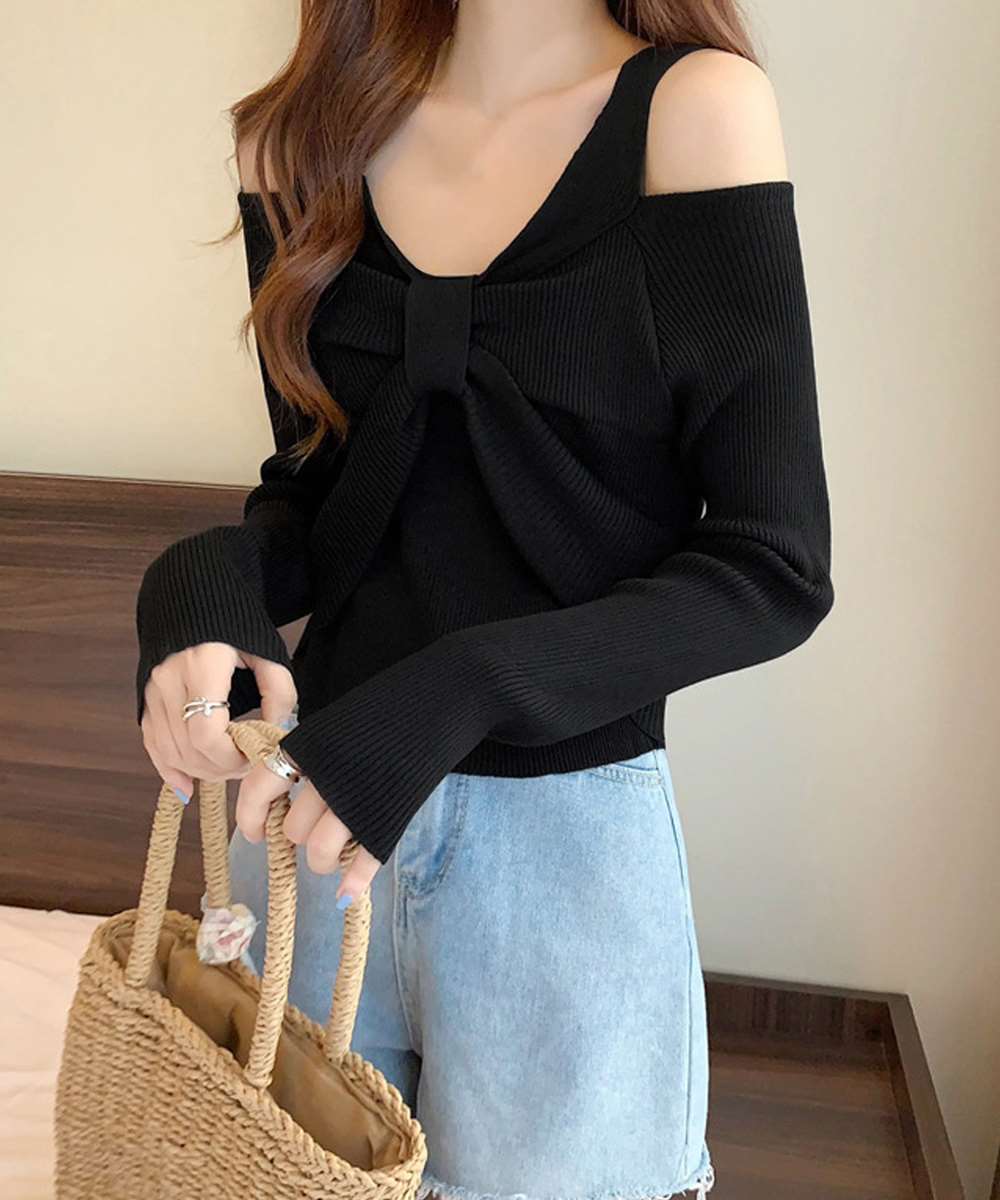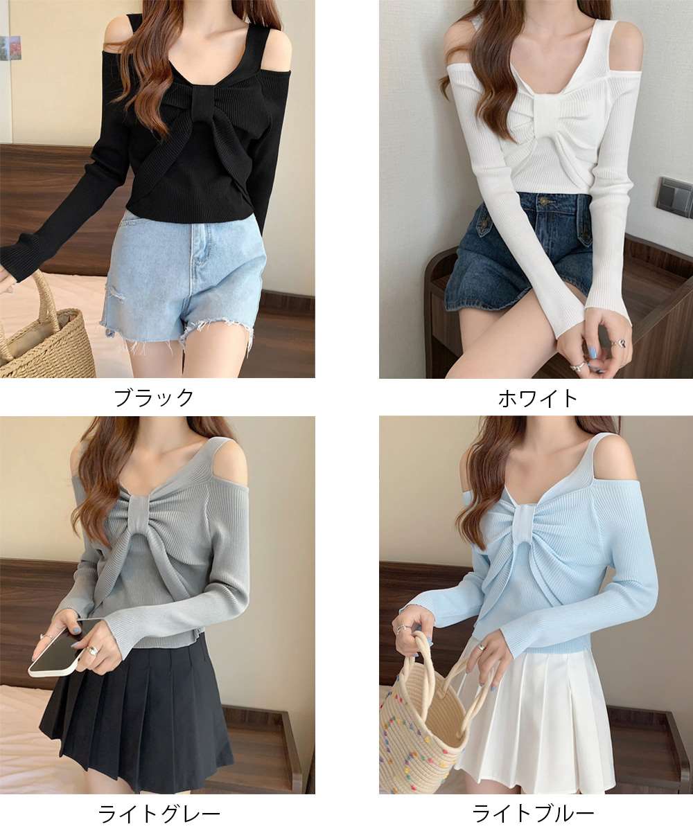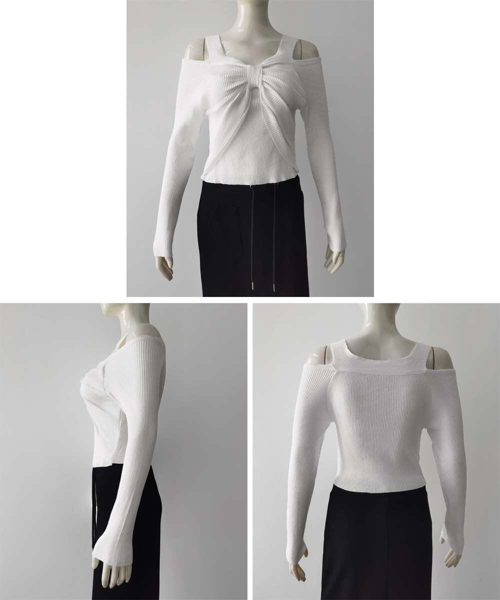 レディース ニットウエア ニットプルオーバー 肩出し カジュアル ニットセーター 着やせ ニットインナー