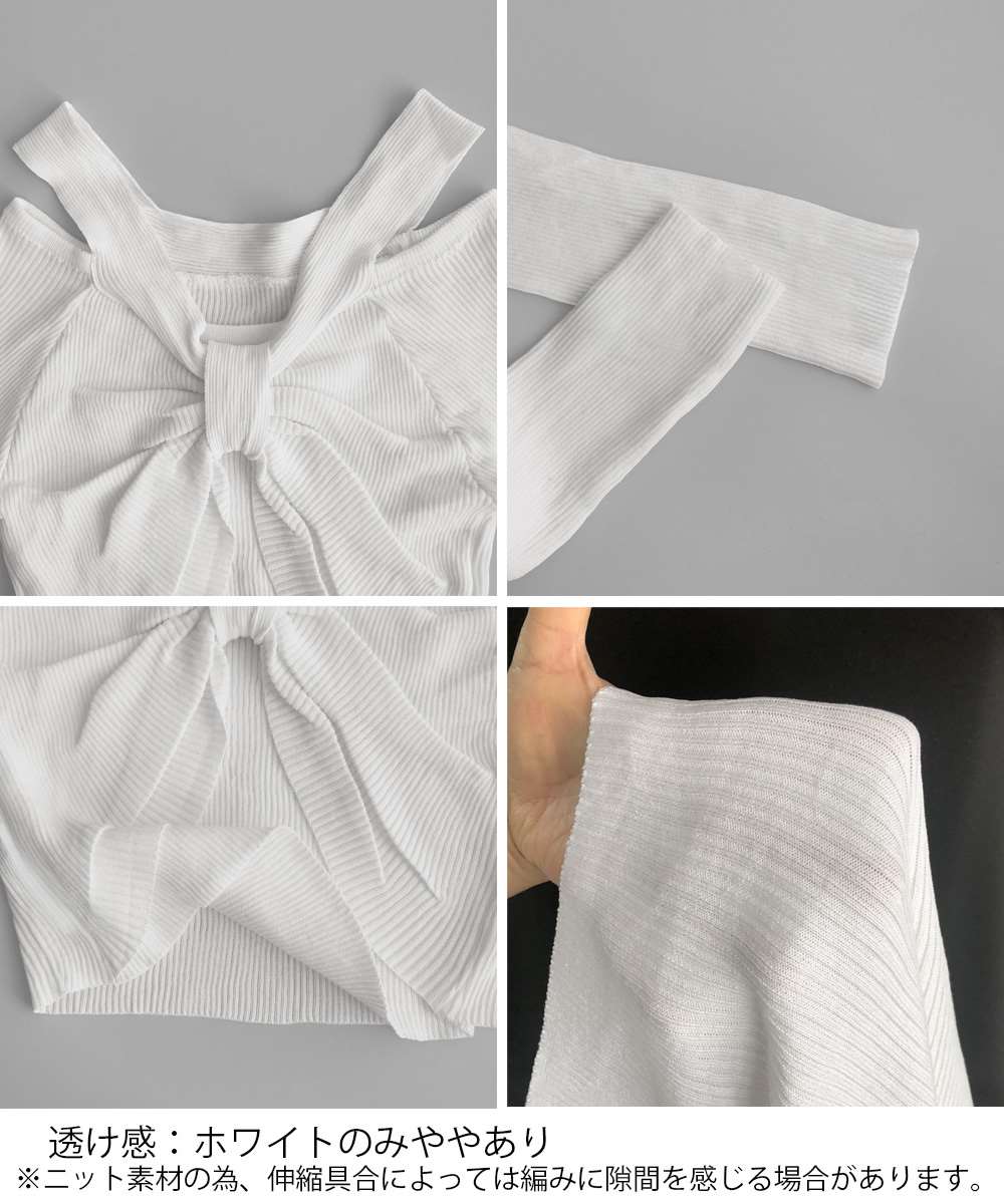 フロントリボン リブニット トップス 大人 薄手