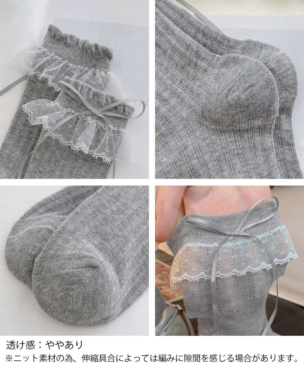 レース付き リボン ソックス 美脚 靴下