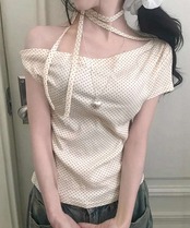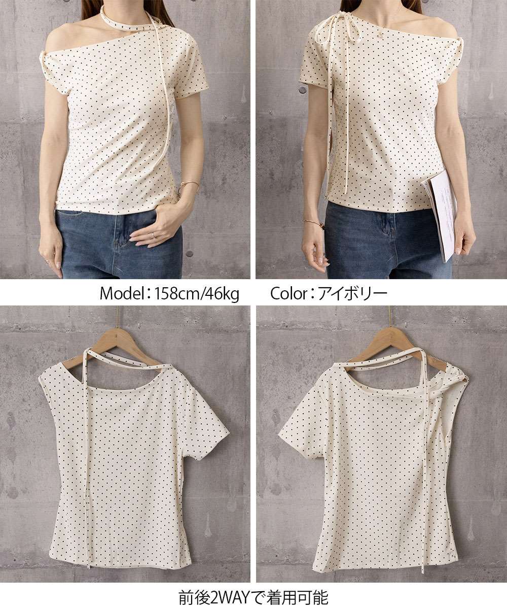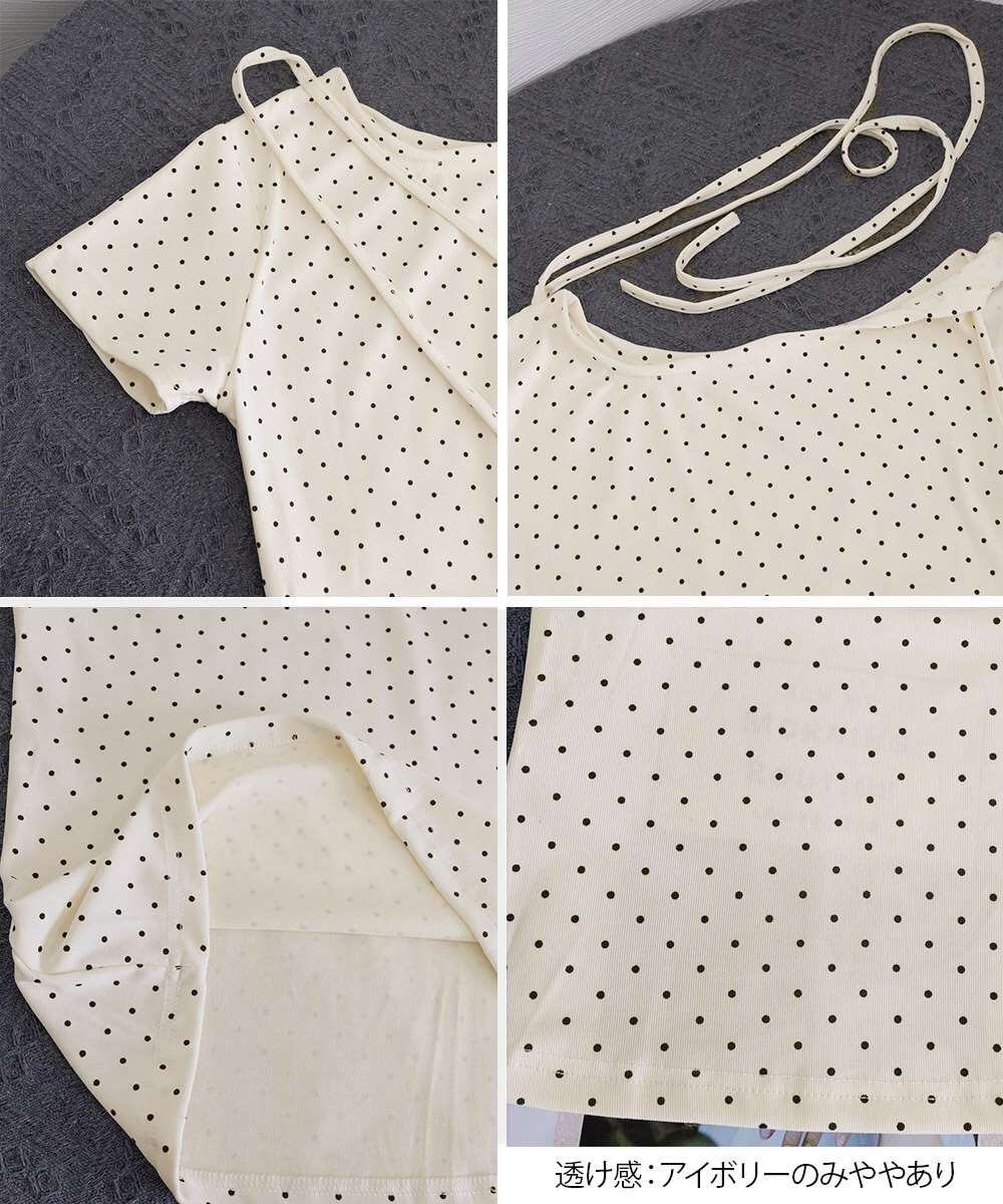 ドット柄 Tシャツ オフショルダー トップス