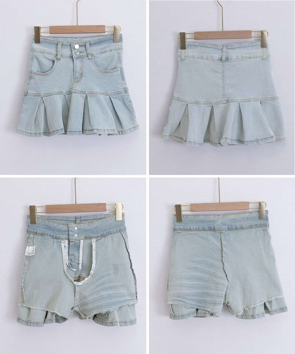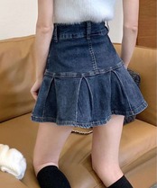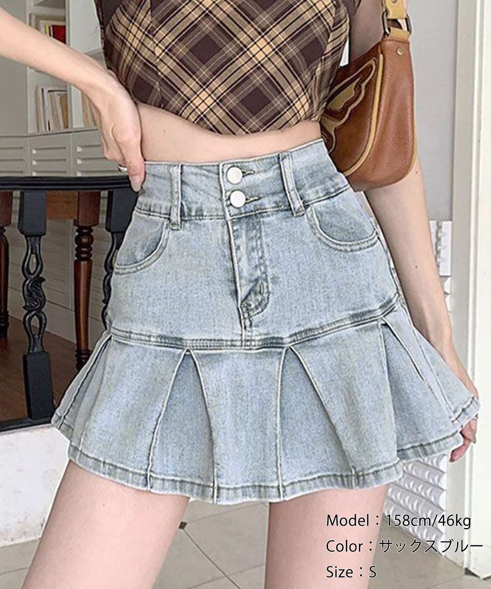 プリーツ デニム スカート 韓国風 ミニ