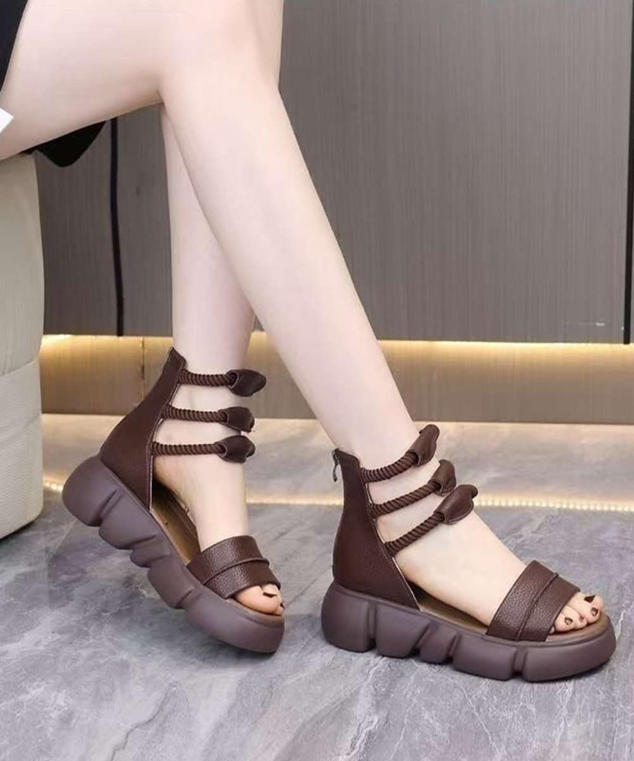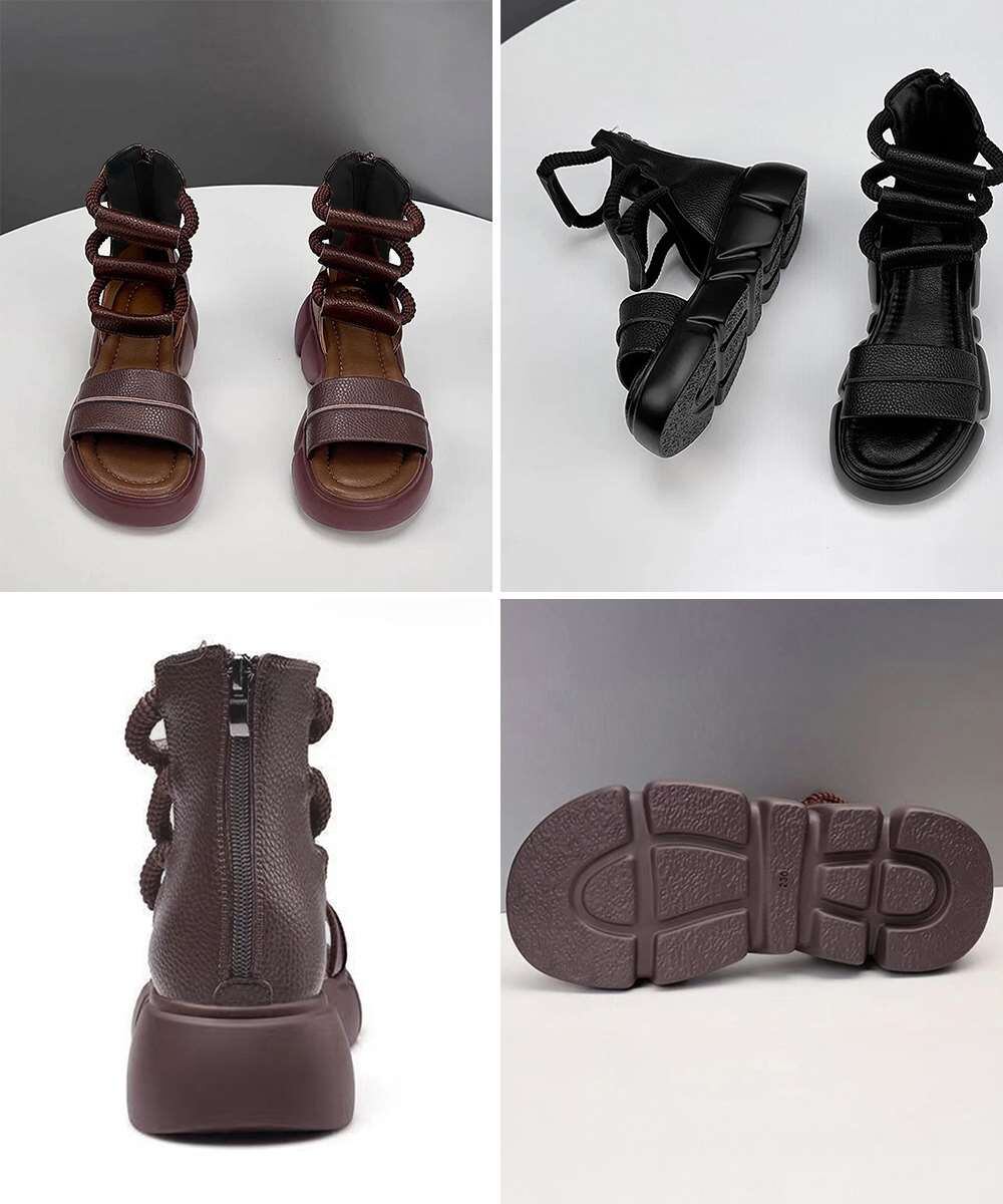 厚底ボリュームソールのローマ風ブーツサンダル。