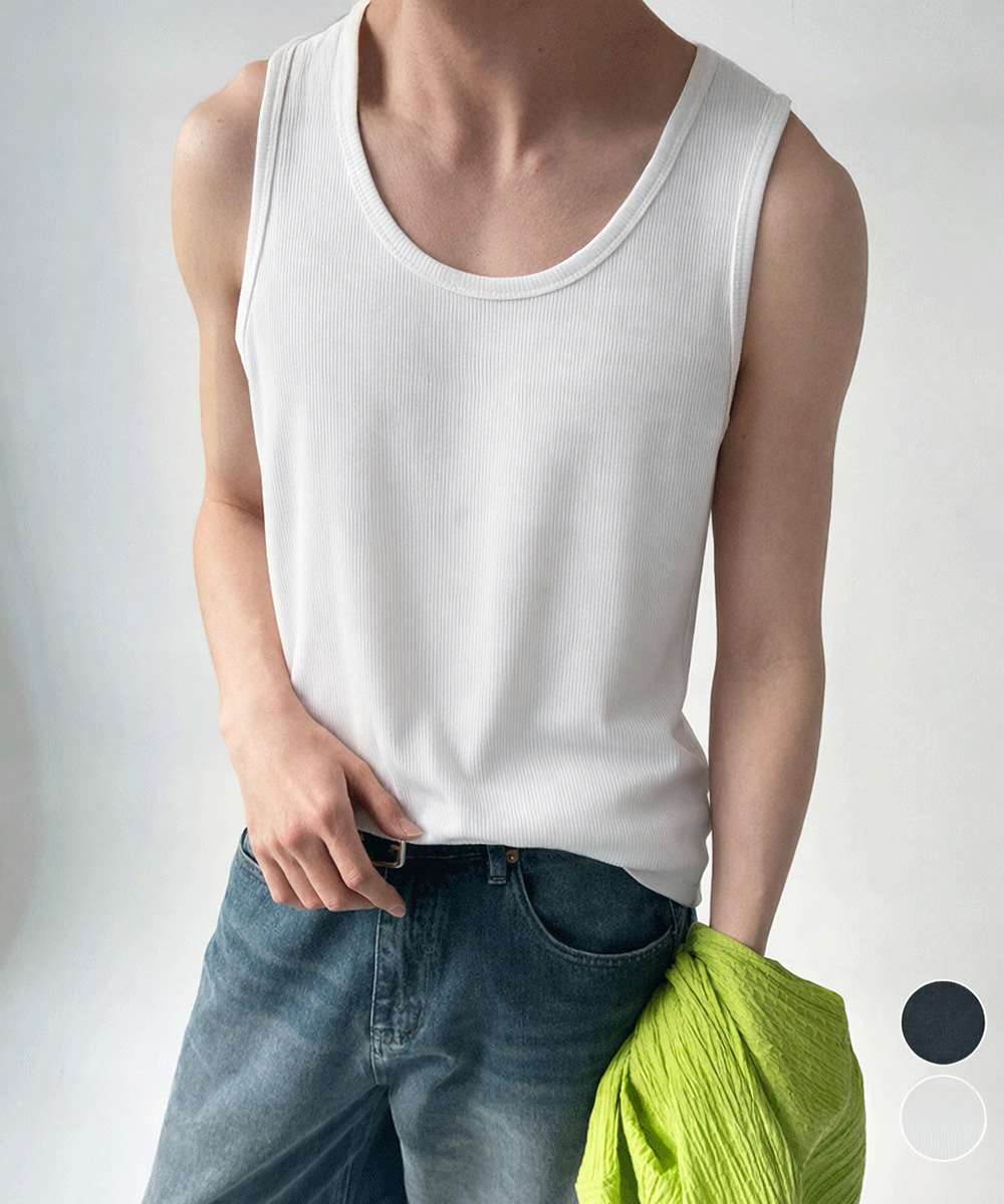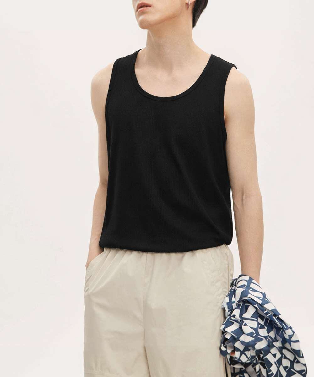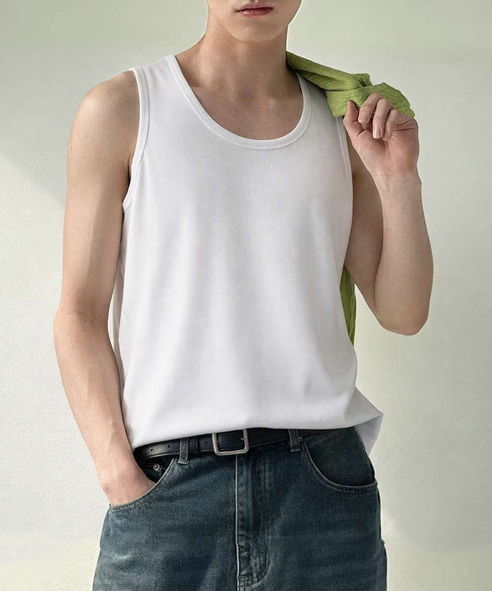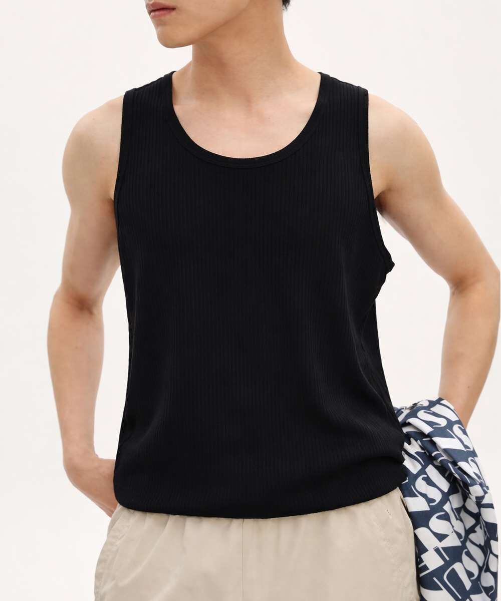 Uネック リブ タンクトップ メンズ トップス