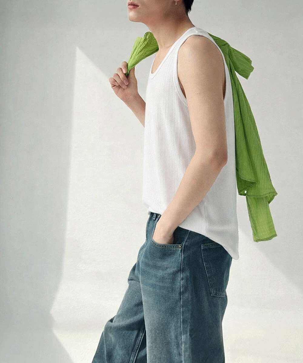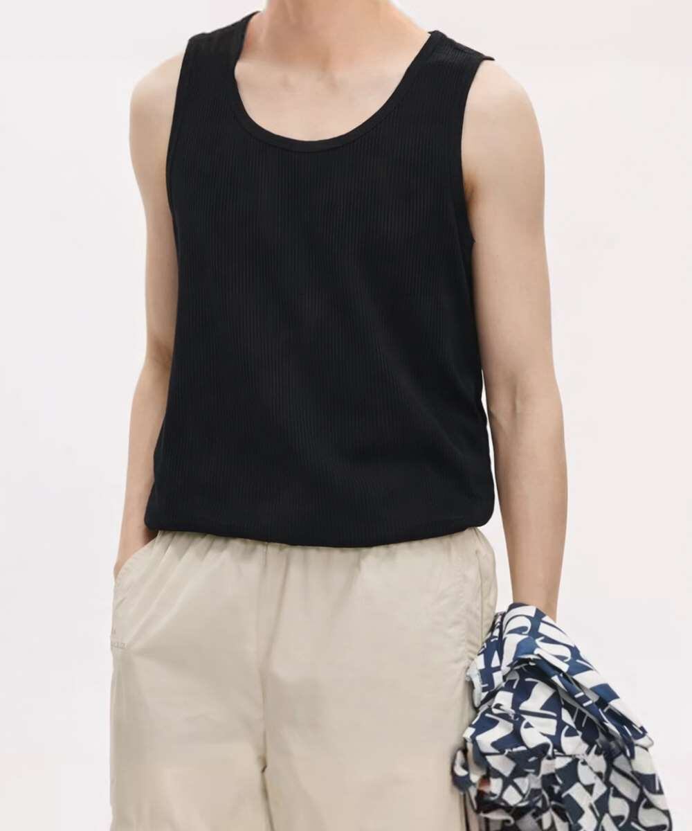 縦リブ素材で通気性がよく、一枚でもレイヤードでも映える韓国風トレンドアイテム。