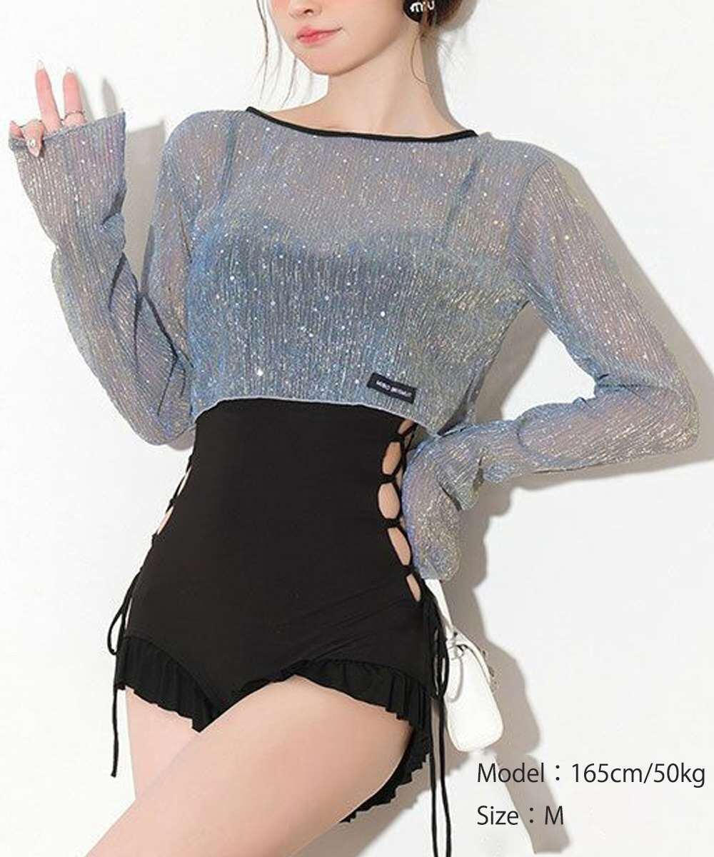 レースアップ ワンピース 水着 2点セット