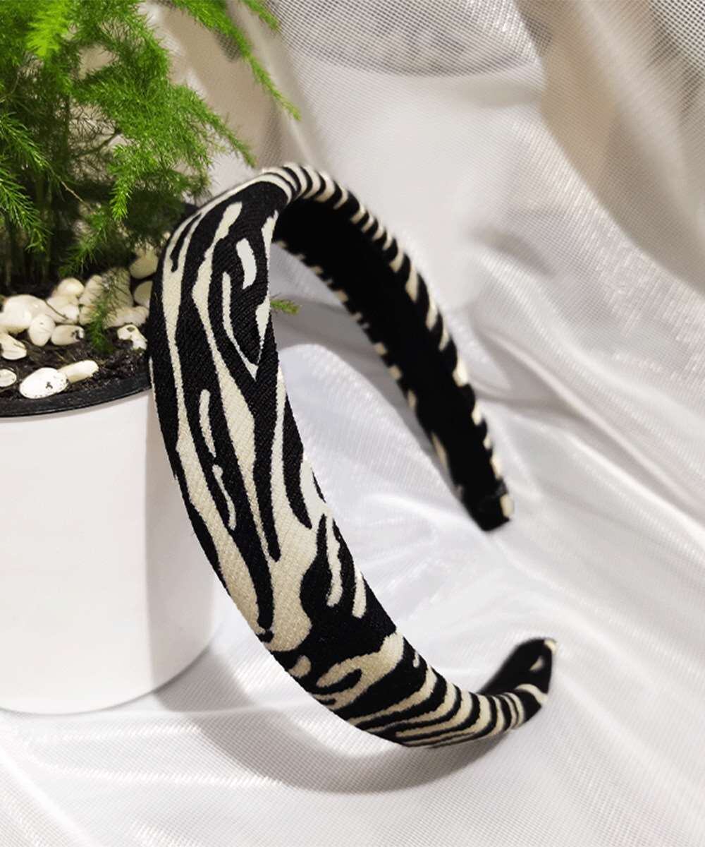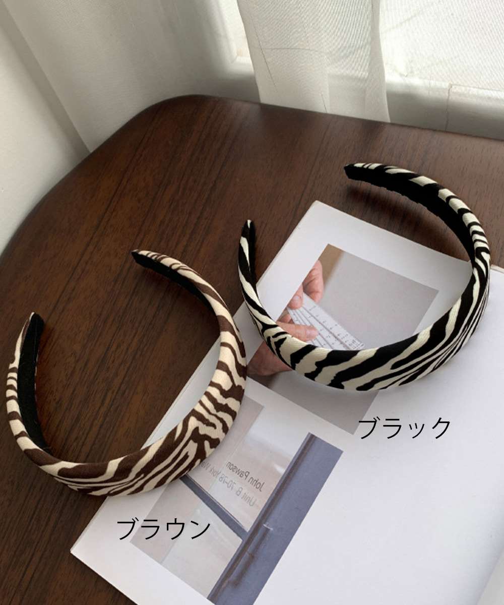 トレンド感のあるゼブラ柄の太めカチューシャ。