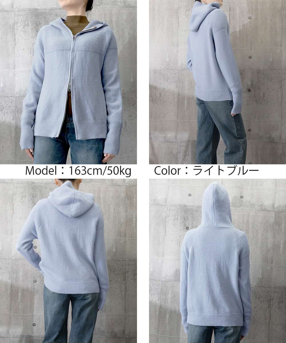 柔らかな風合いが魅力のジップアップニットパーカー。