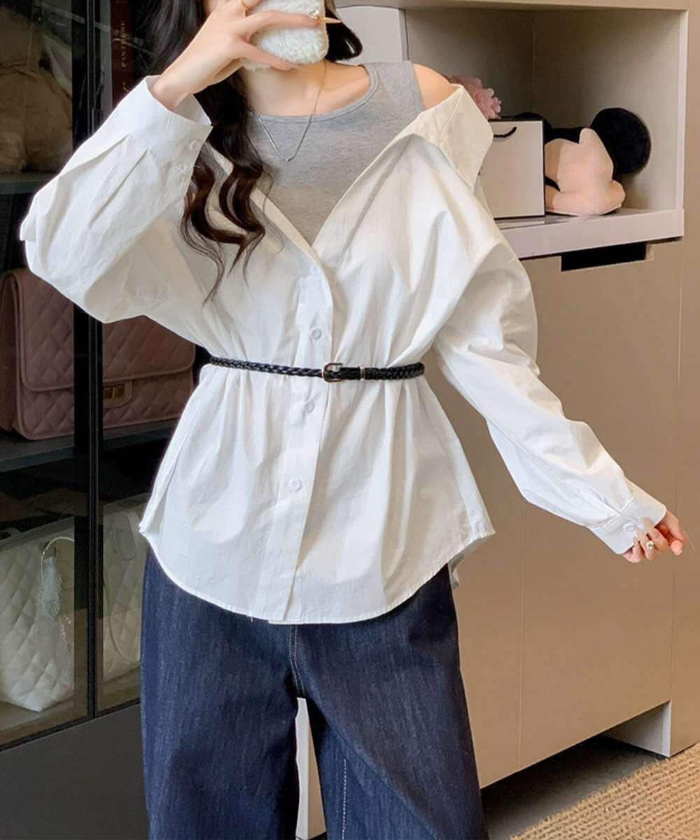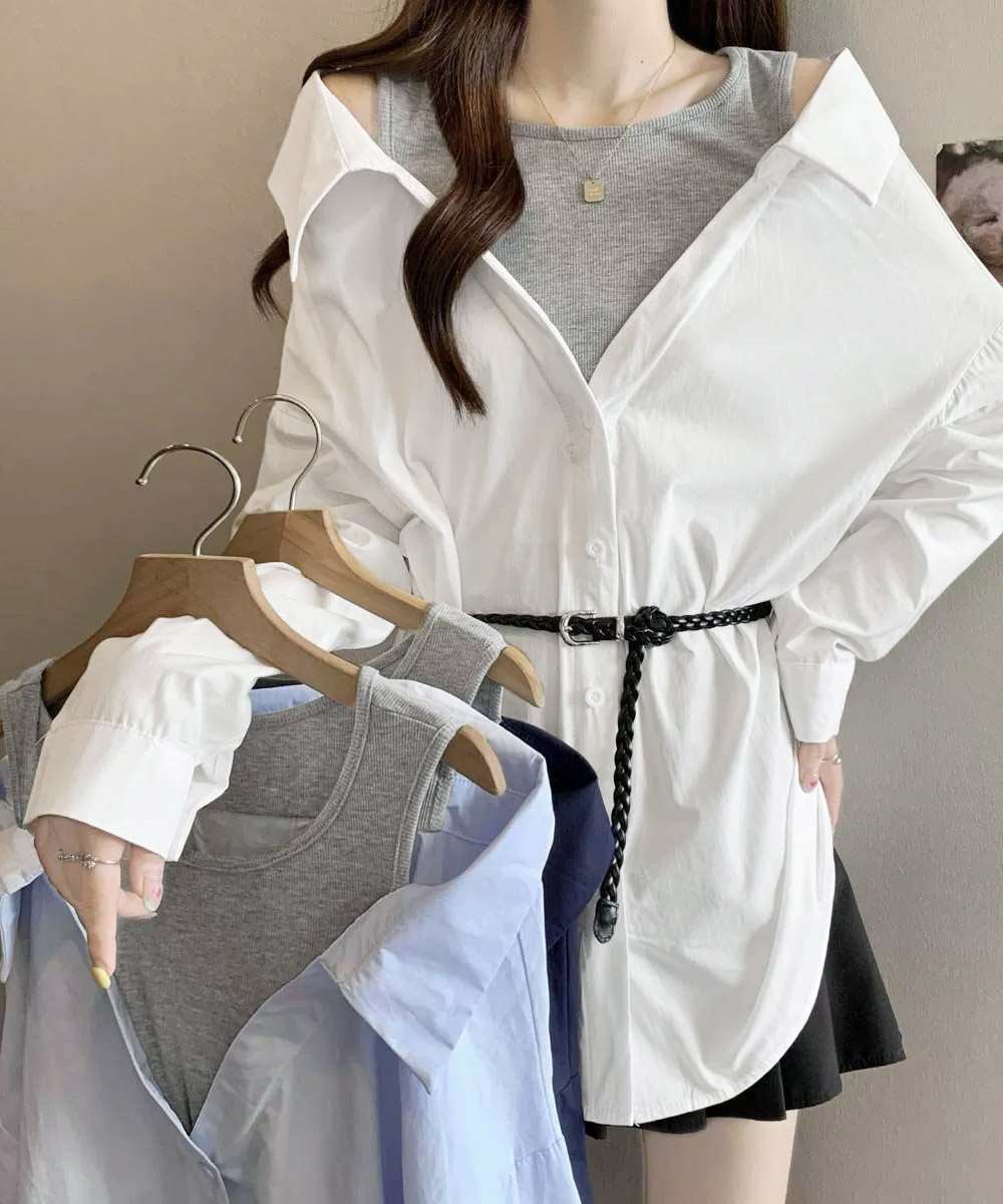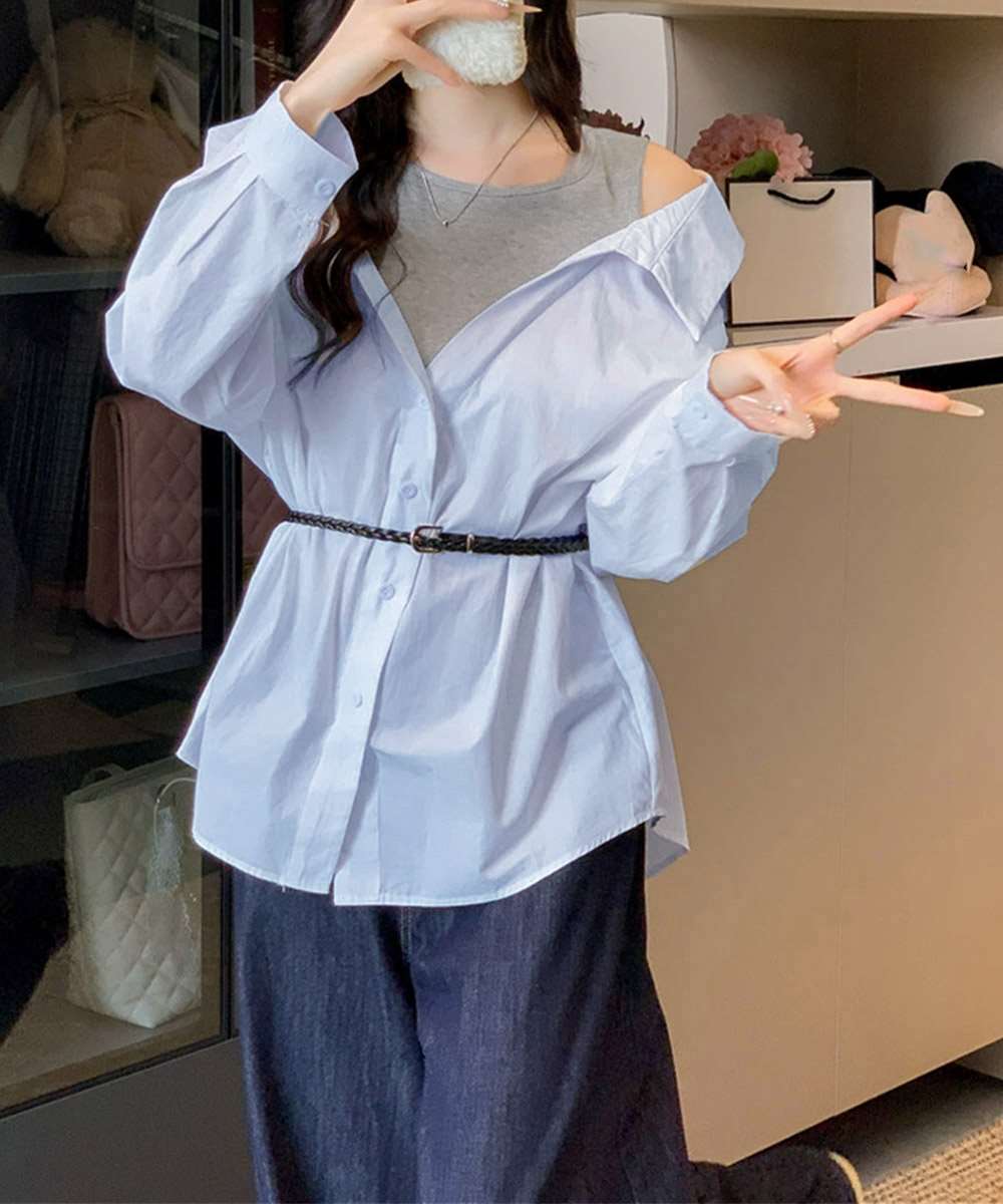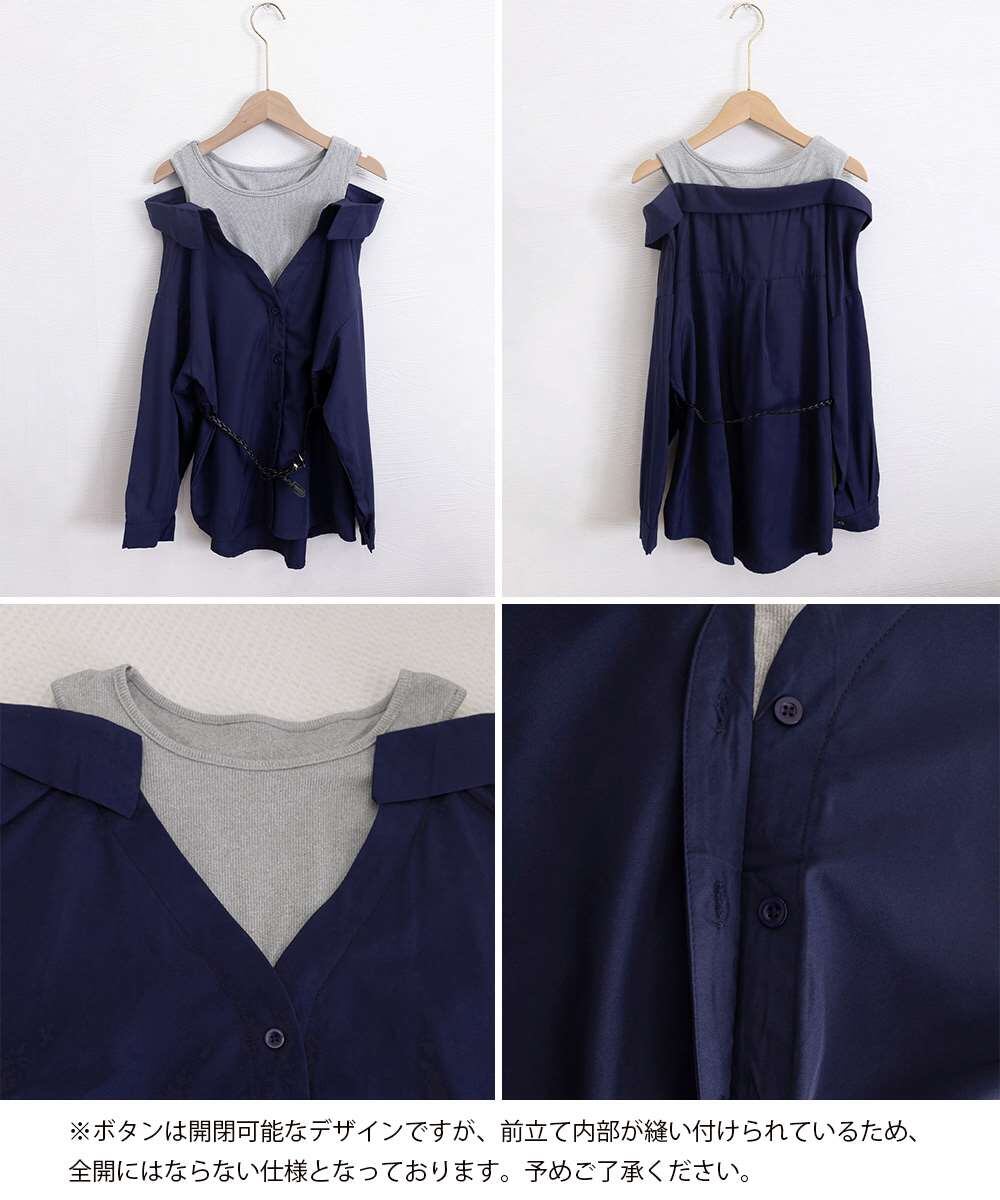 オフショルダー シャツ タンクトップ 重ね着風