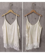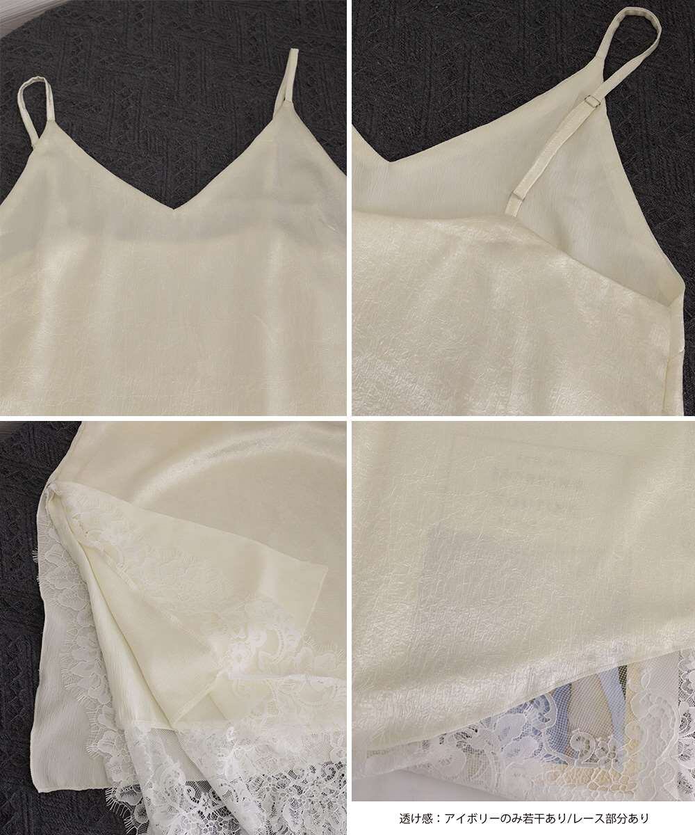 サテン調 レーストリム キャミソール Vネック