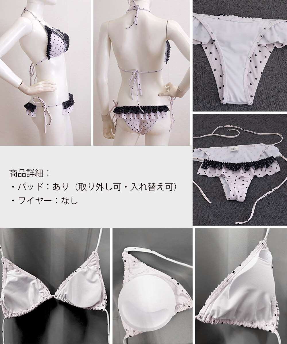 水玉ドット柄とフリルが可愛らしい、セパレートタイプのビキニセット。