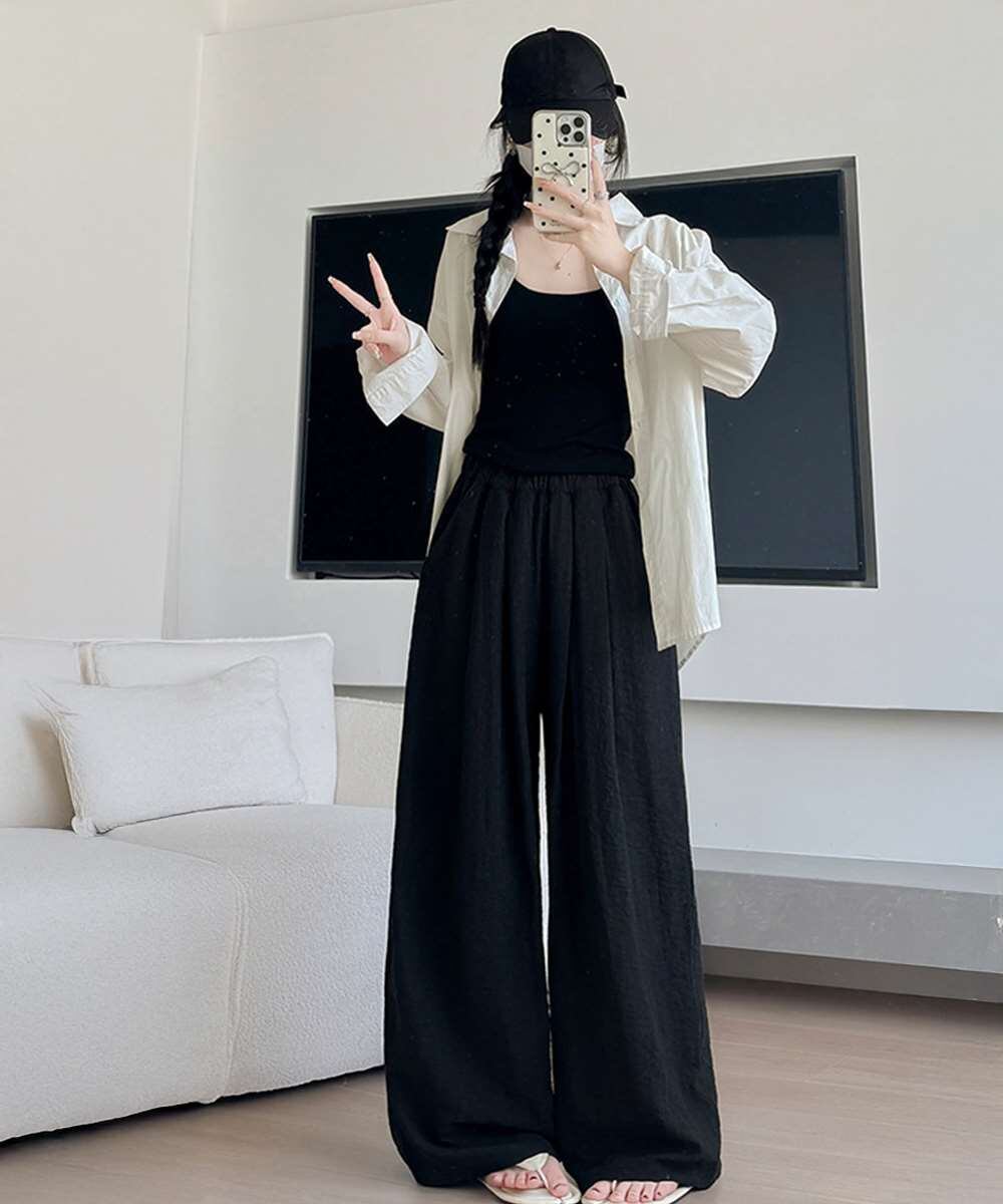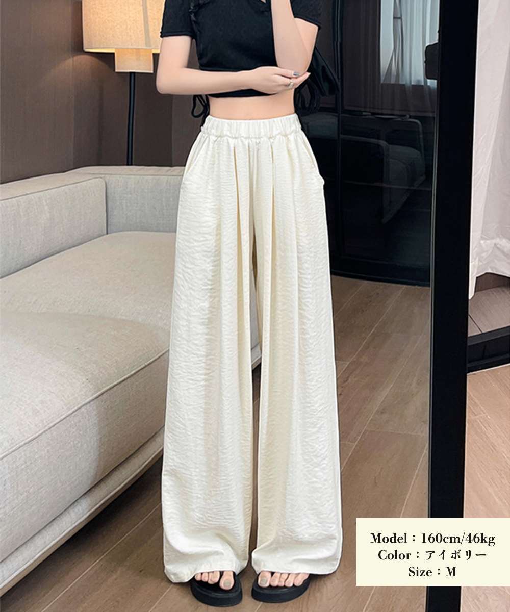 ロングパンツ 楽ちんパンツ 薄手 シワ感 美脚脚長 ゆったり 着やせ ベーシック おしゃれ お出かけ オフィス
