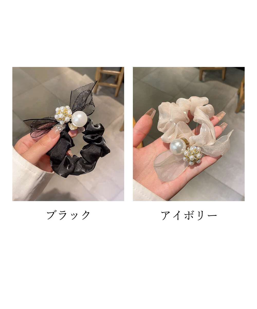 シュシュ リボン パール ヘアゴム 韓国風
