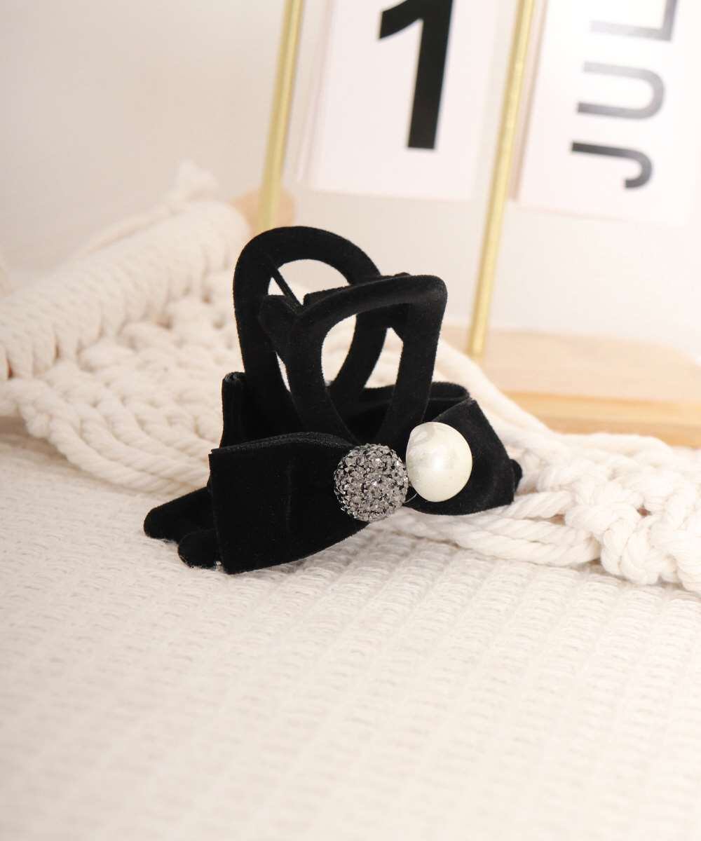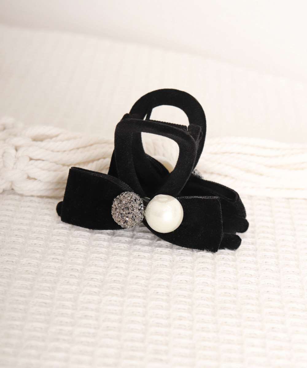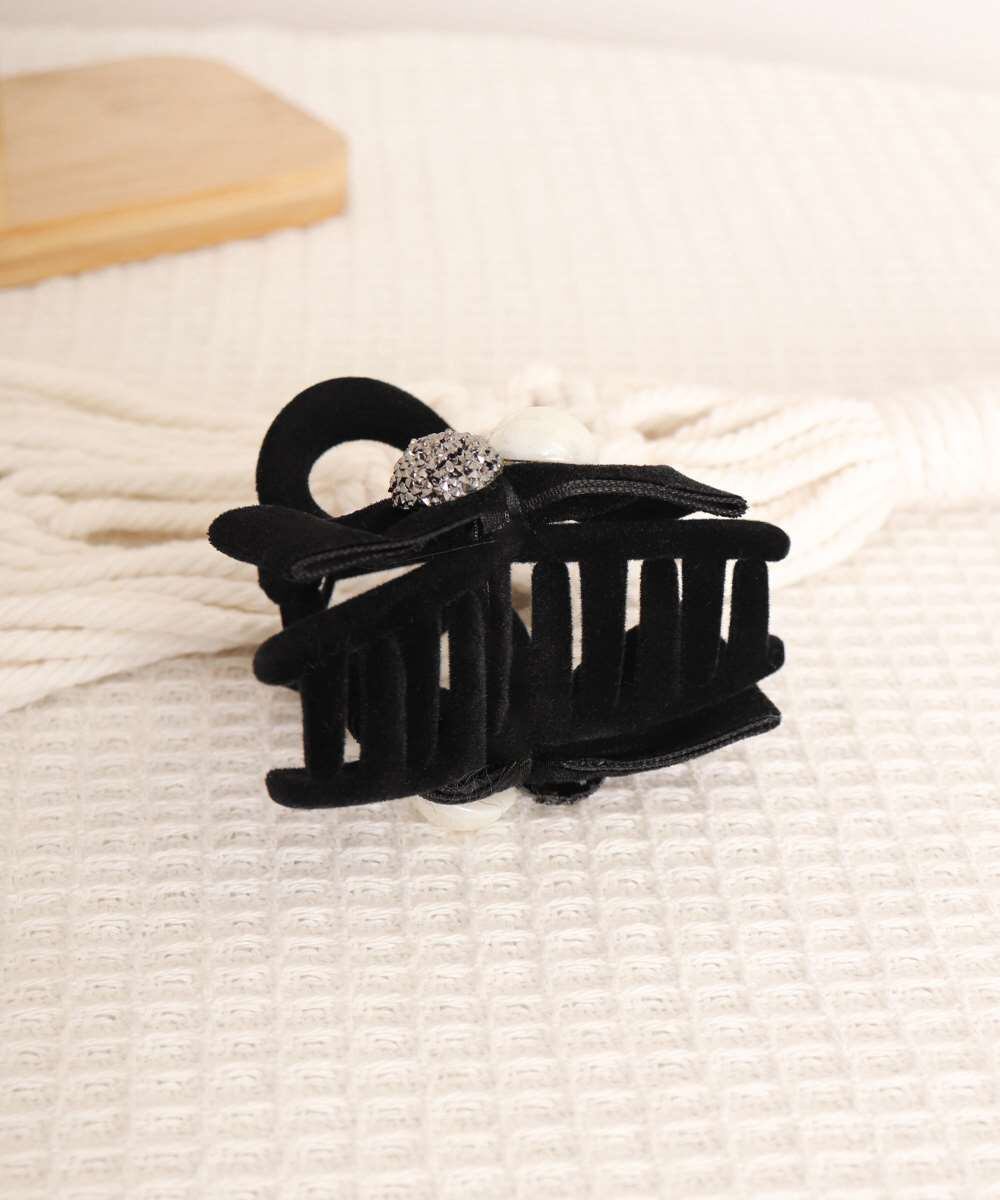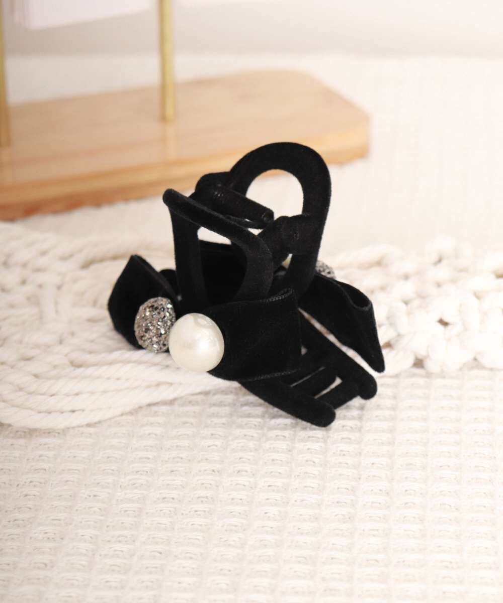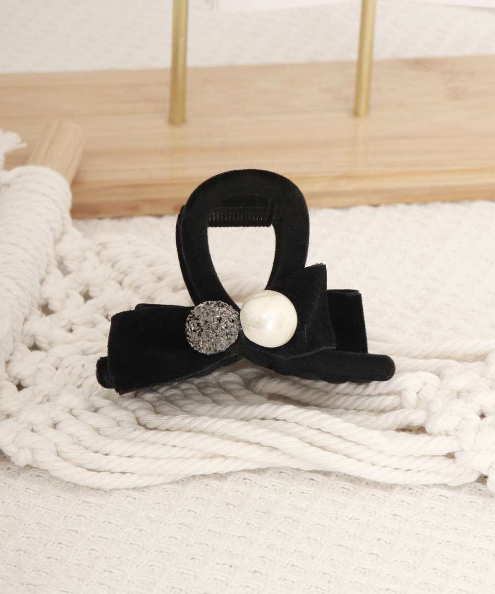上品なフェイクパールとリボンを組み合わせた、女性らしいデザインのヘアクリップ。