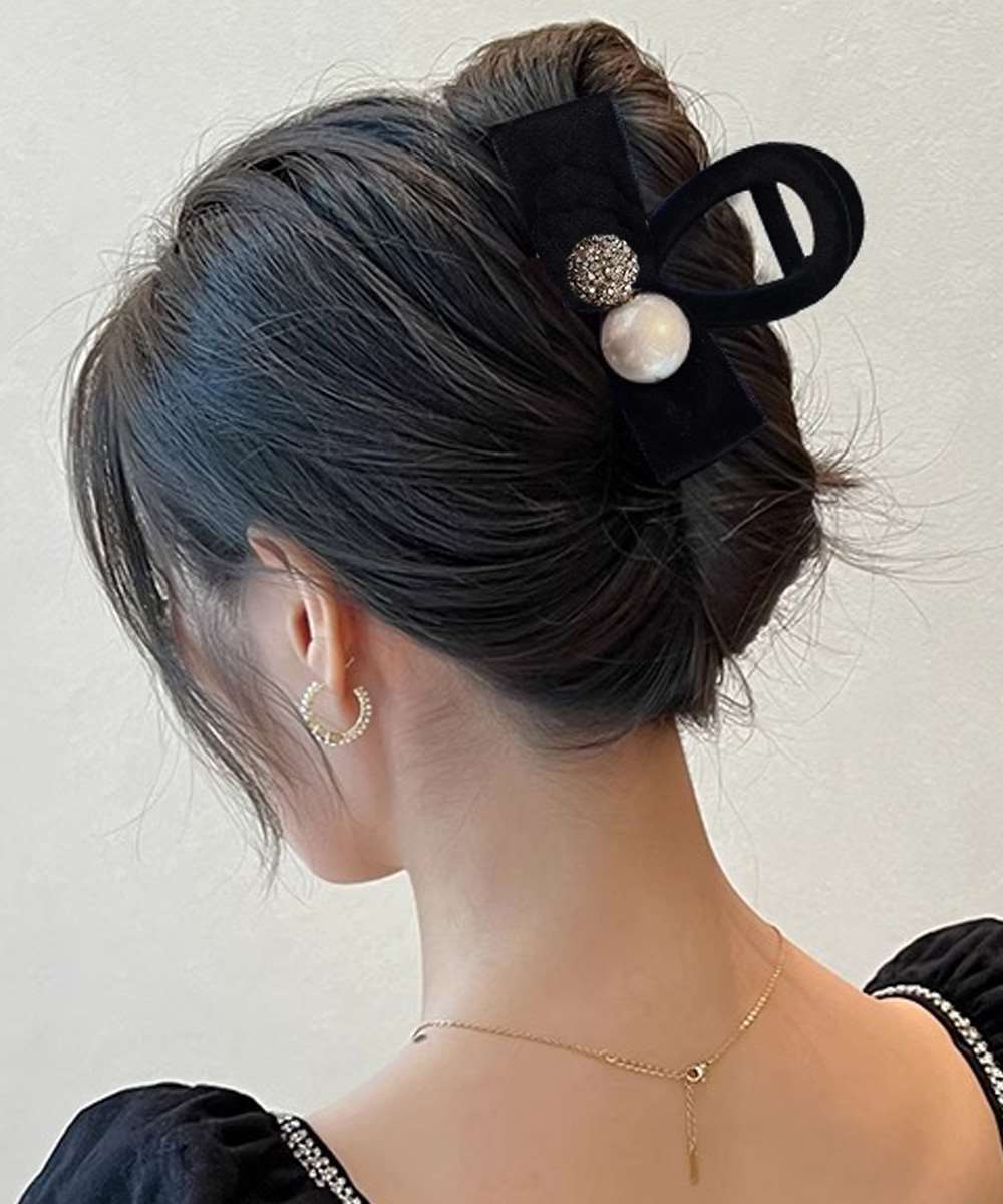 小さめサイズで、後ろ留めやハーフアップにちょうど良く、さりげなく髪型を引き立てる。