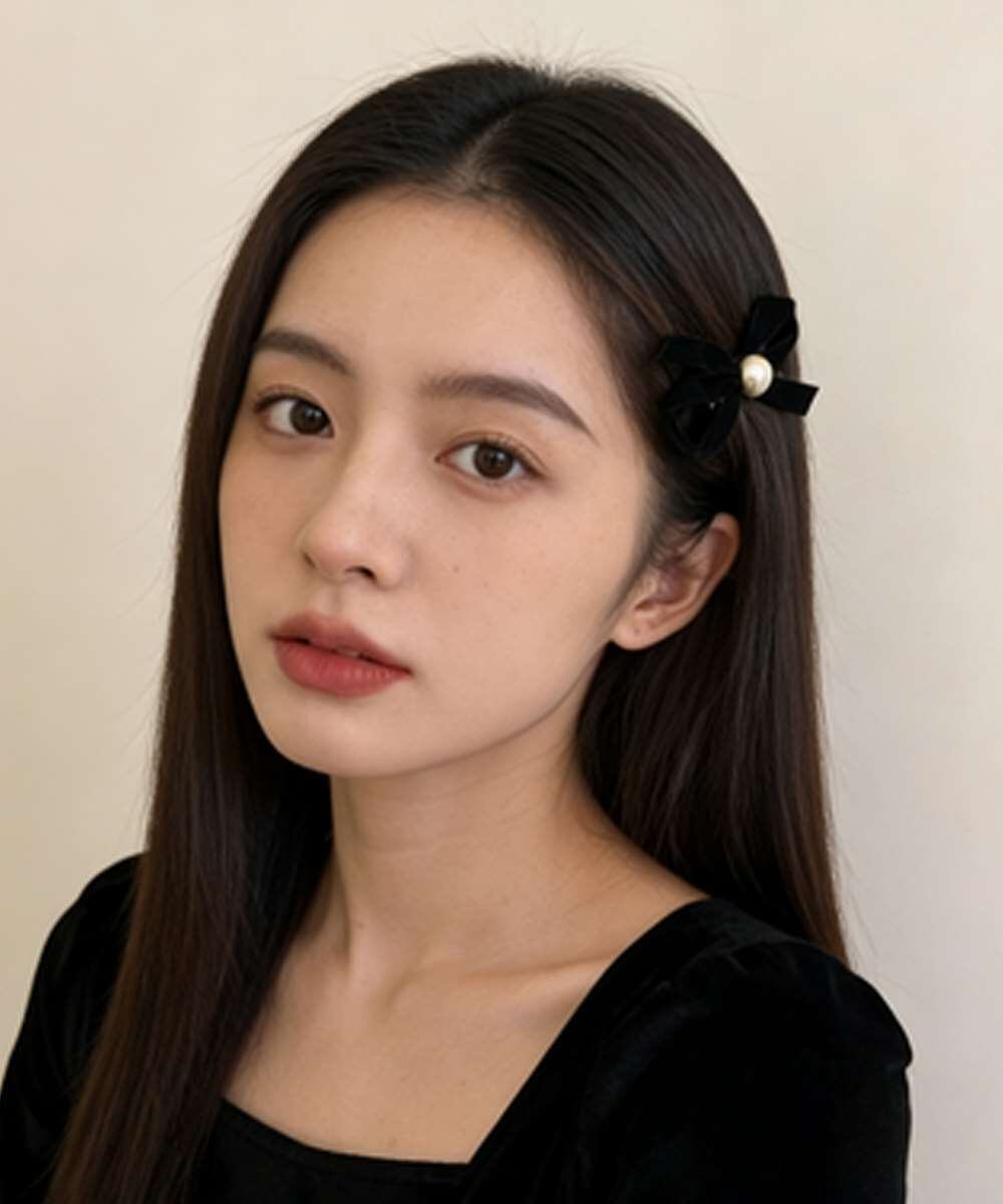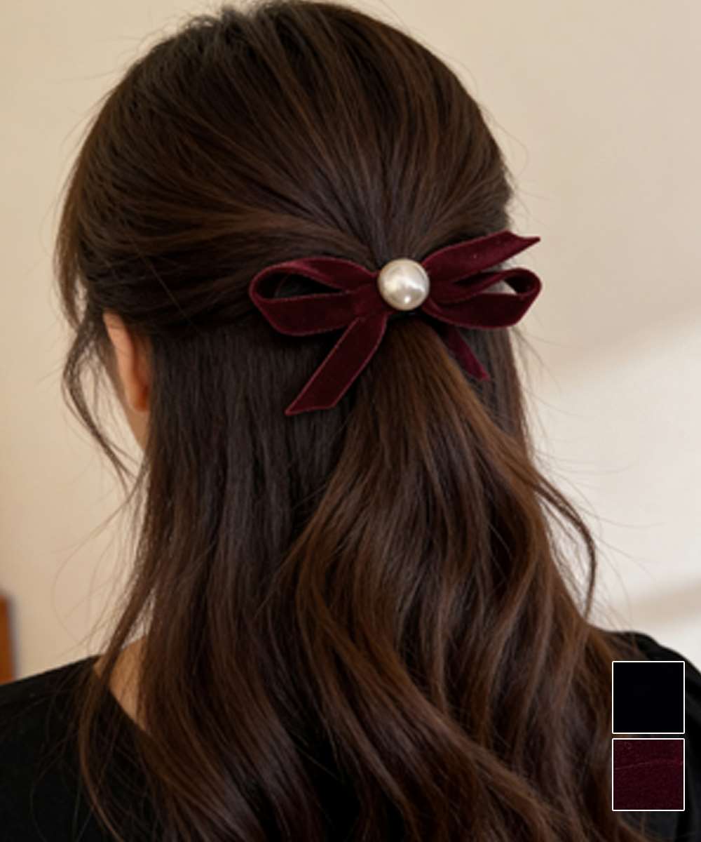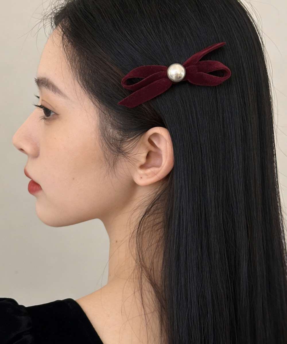 女性らしいシルエットが印象的なベロア調リボンヘアクリップ。